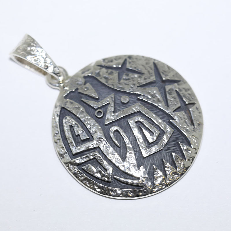 Beautiful sterling silver pendant is done in the overlay technique which features a Wolf howling at the moon.