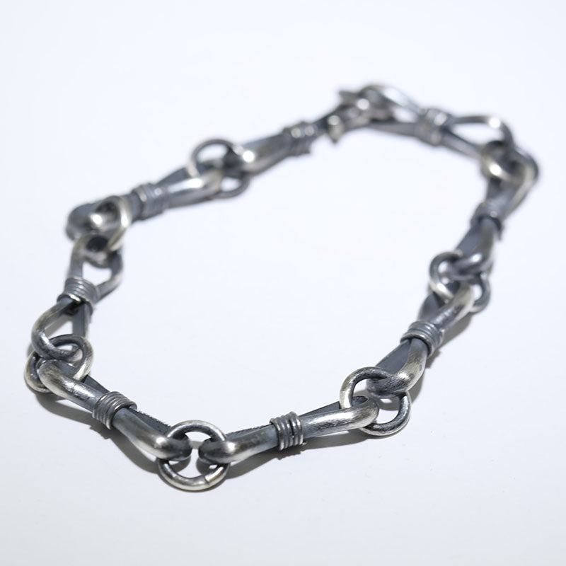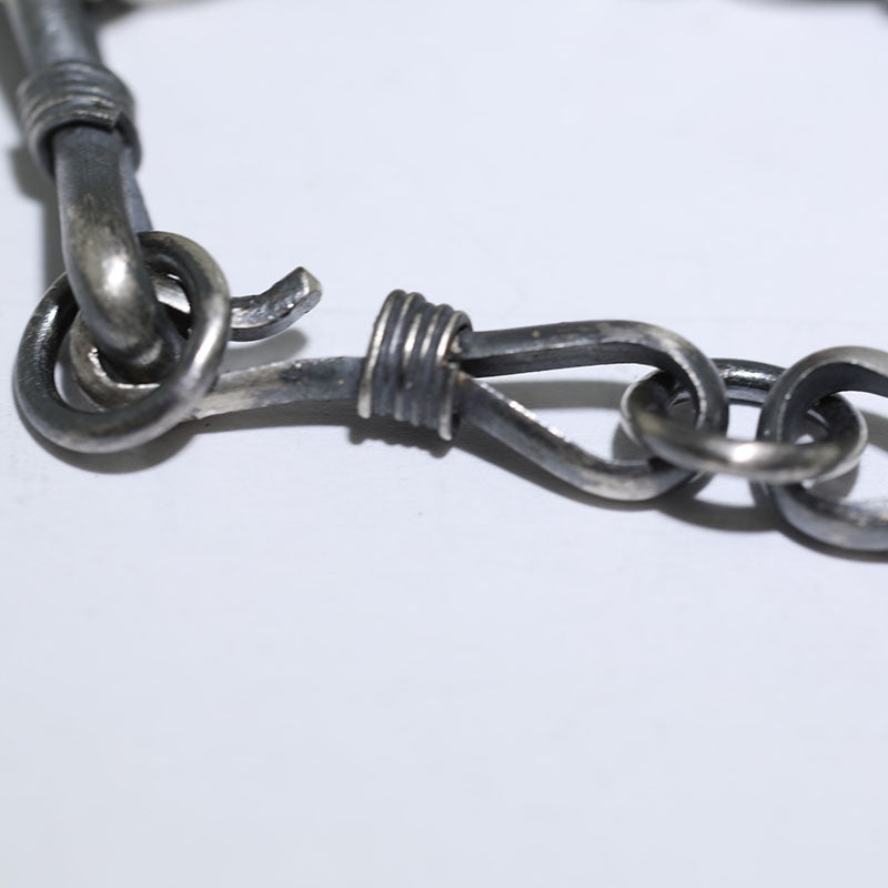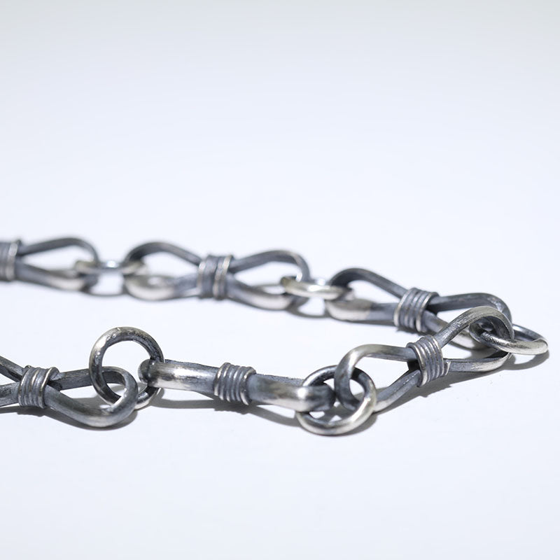Handmade sterling silver chain is created with hand shaped silver, hooks and rings creating a chain link design.