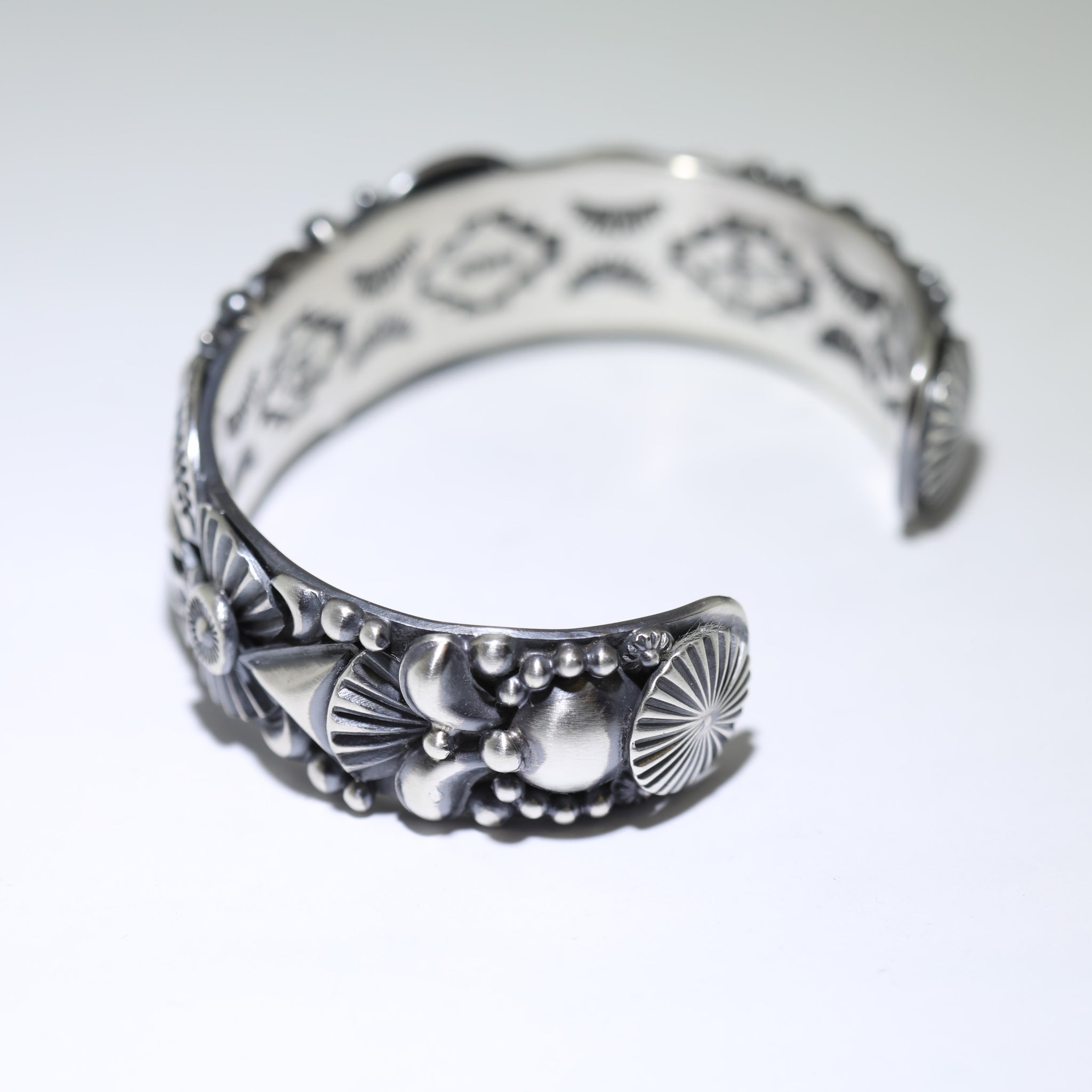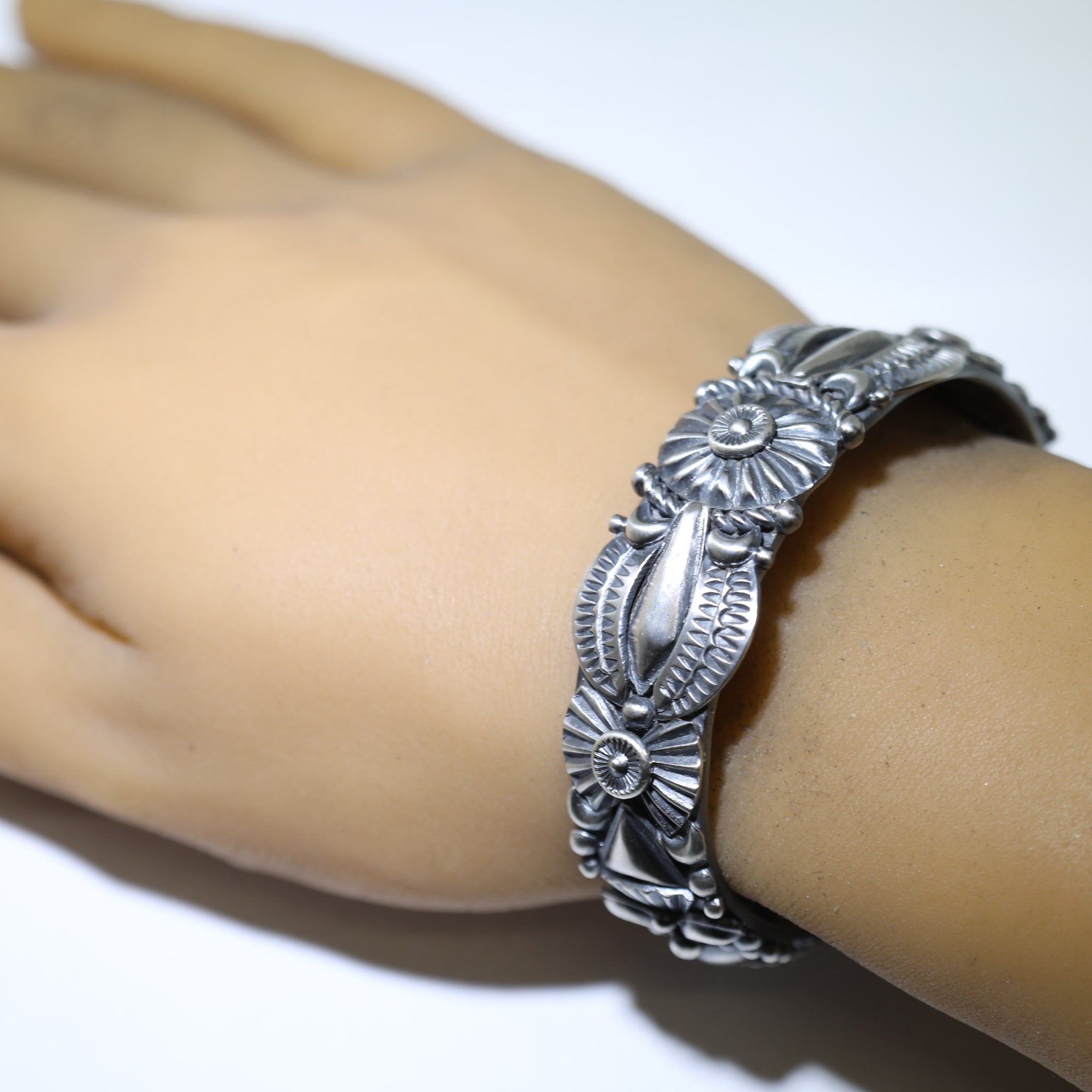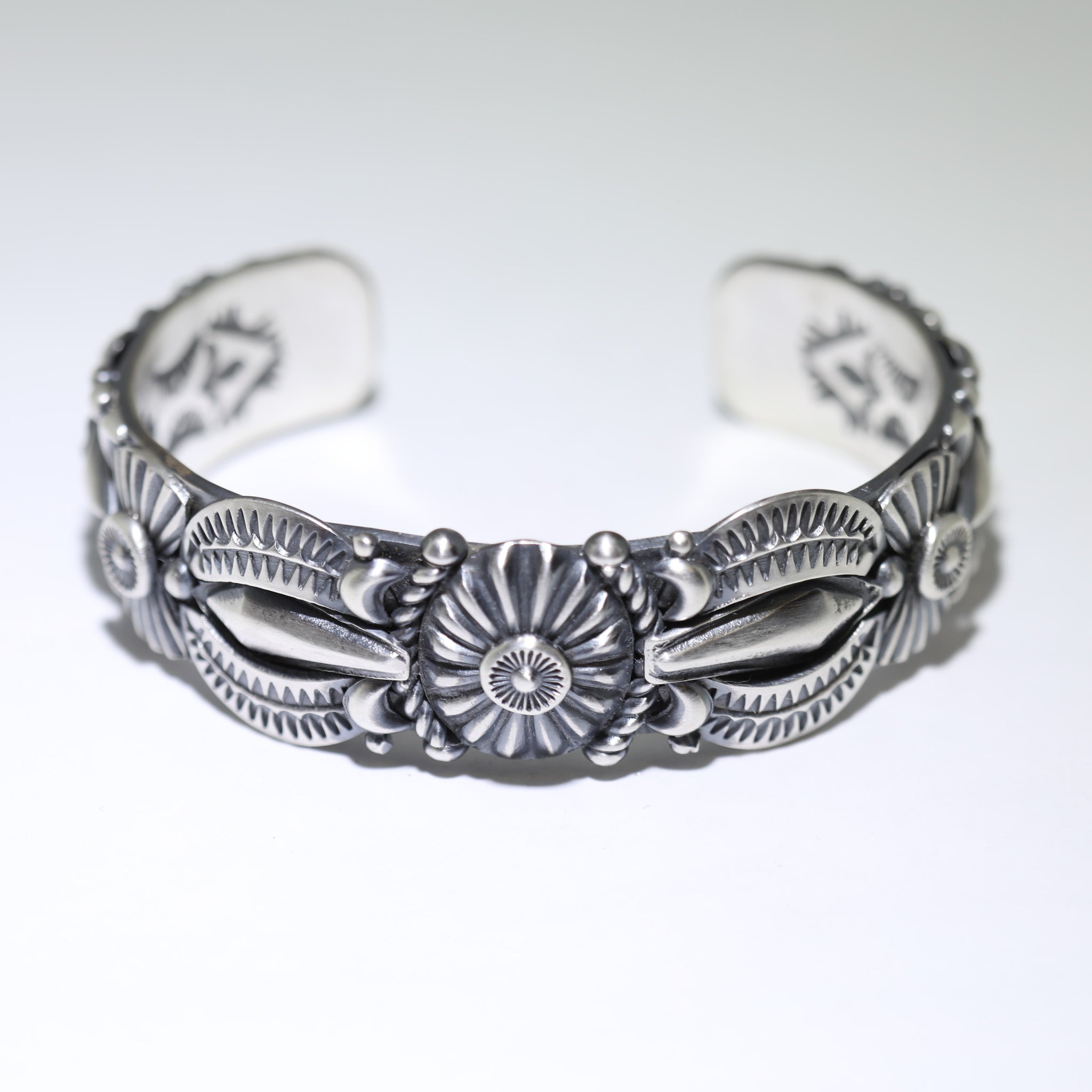 Delbert was born in 1955, in Fort Defiance, AZ. He taught himself the art of silversmithing and is now making jewelry in Tohatchi, NM. His jewelry is known as fancy and traditional Navajo. He is always creating new designs and using heavy silver for each piece.