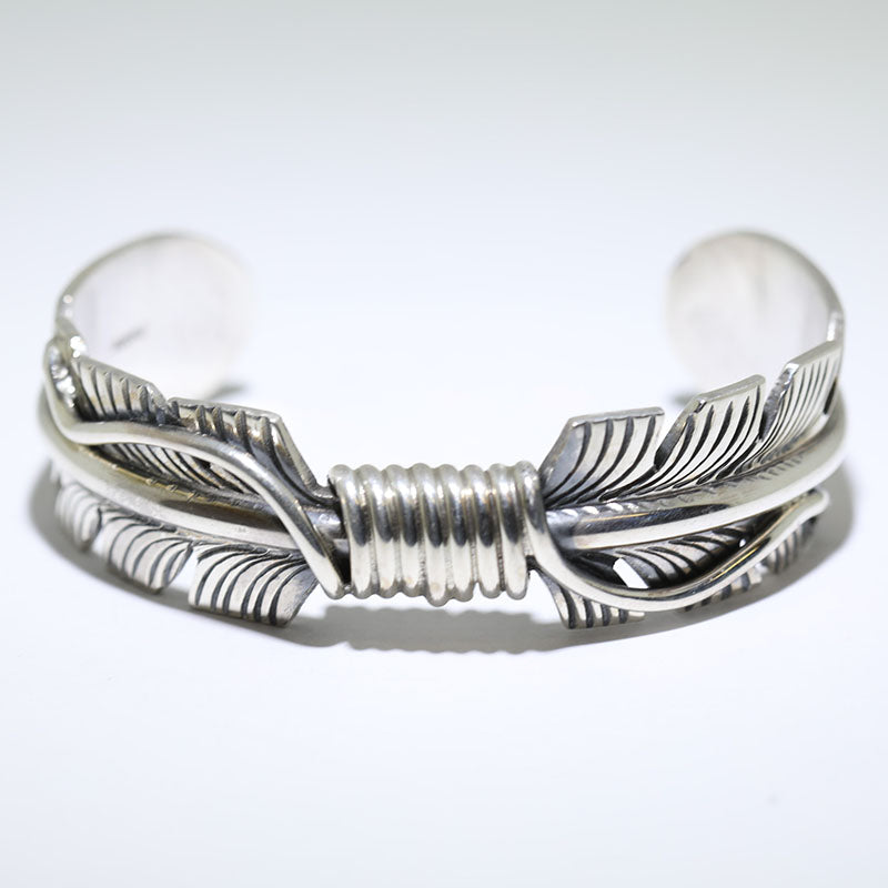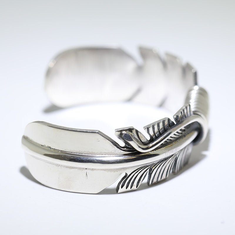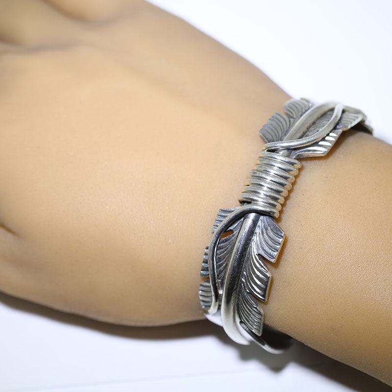 Sterling silver bracelet features a feather design that wraps around the wrist.