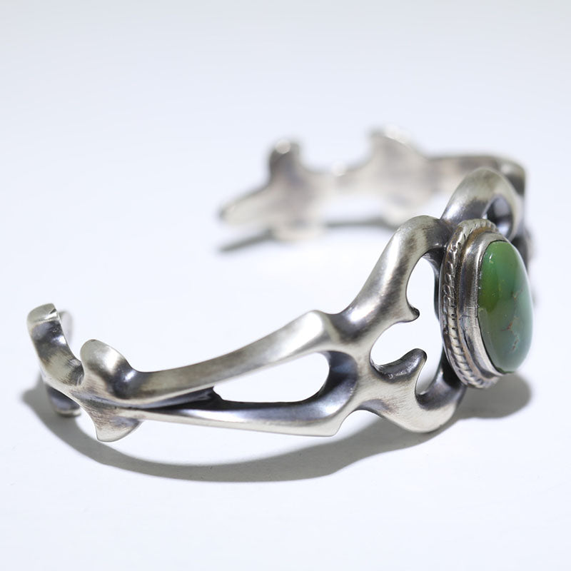 Sterling silver bracelet features a unique design and is set with Stabilized Sonoran Gold Turquoise.
