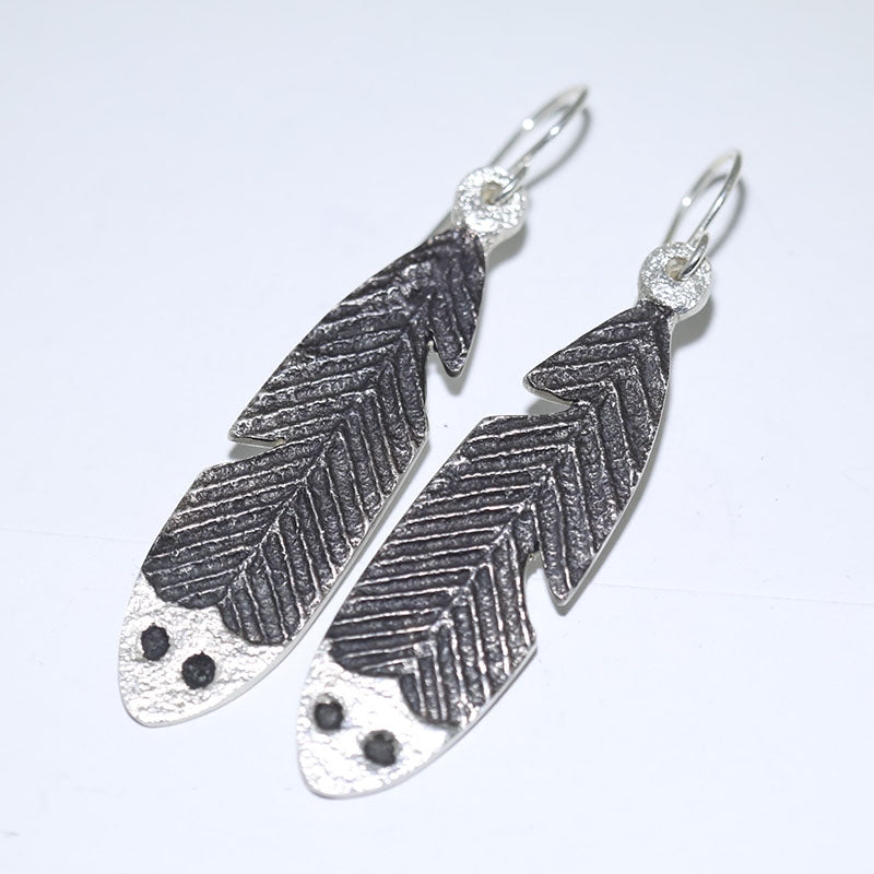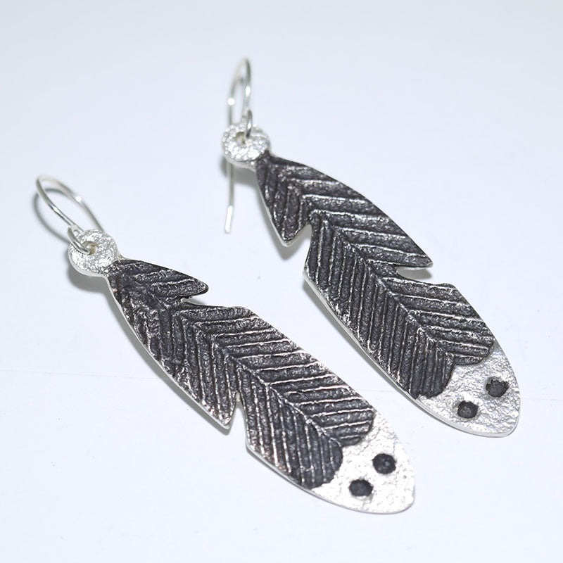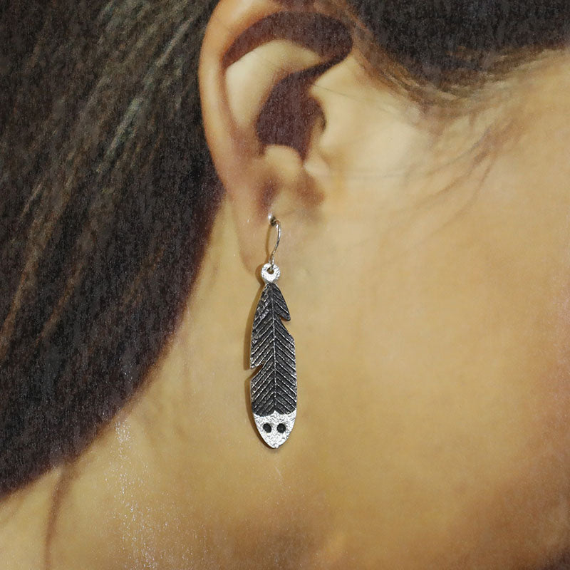 Sterling silver, hook style earrings are shaped like a Feather which has an oxidized look with a shiny tip.