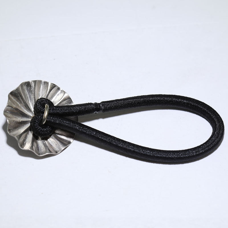 Sterling silver hair tie piece has a concho shape and is set with Turquoise stone in the center.
