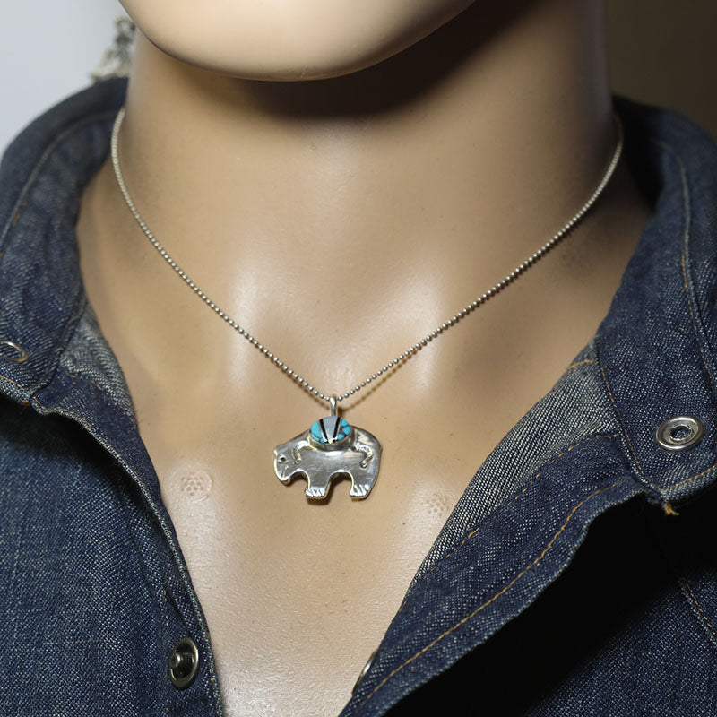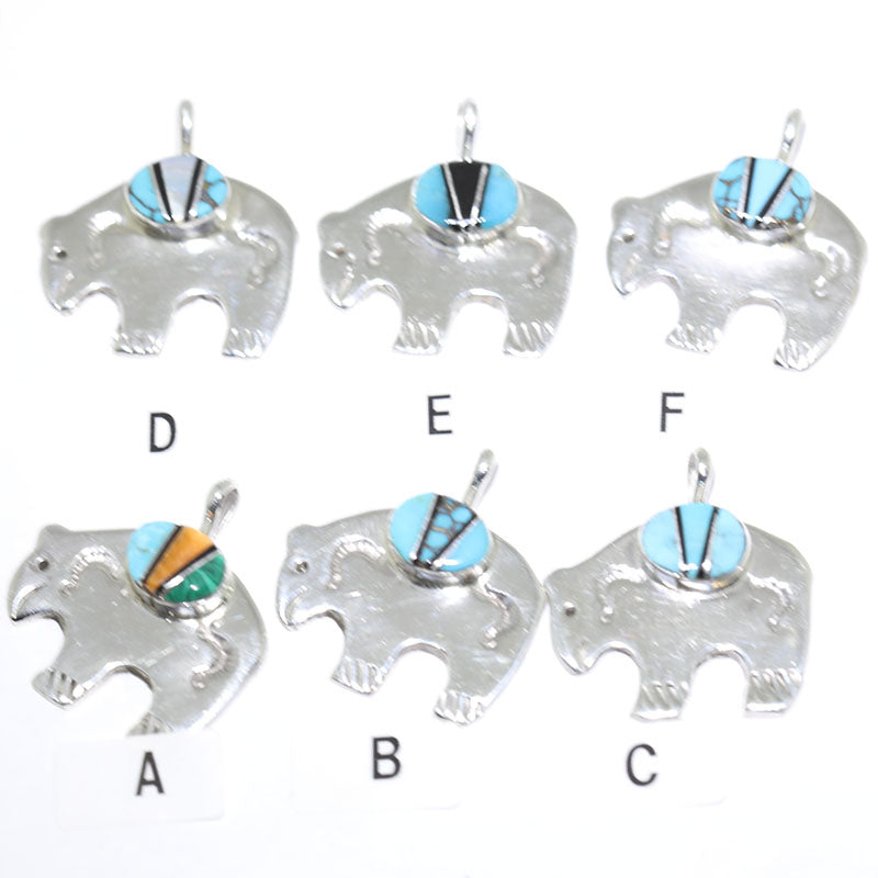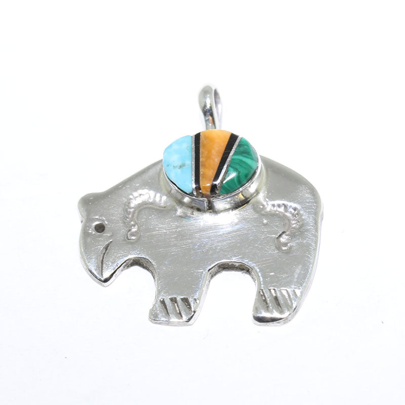 Sterling silver pendant is shaped like a Bear which is inlaid with different colorful stones that you can choose from.