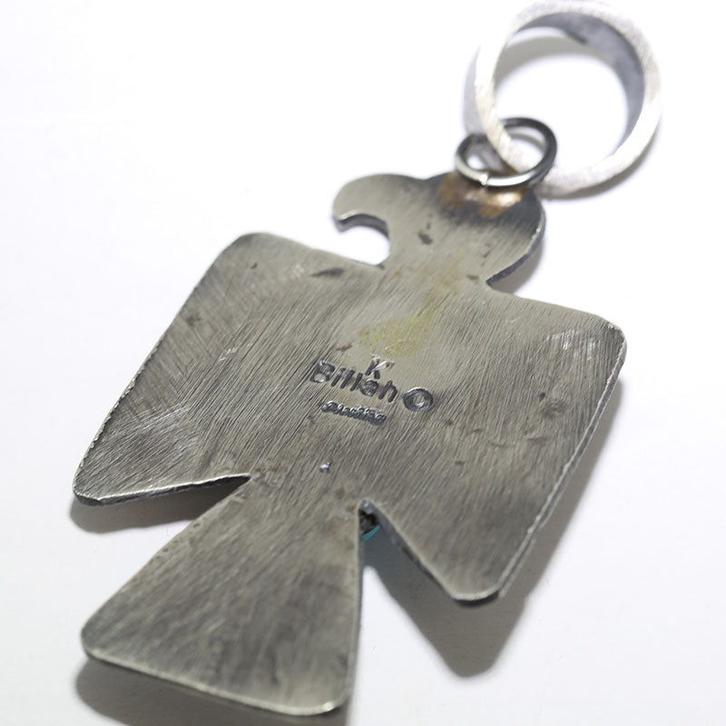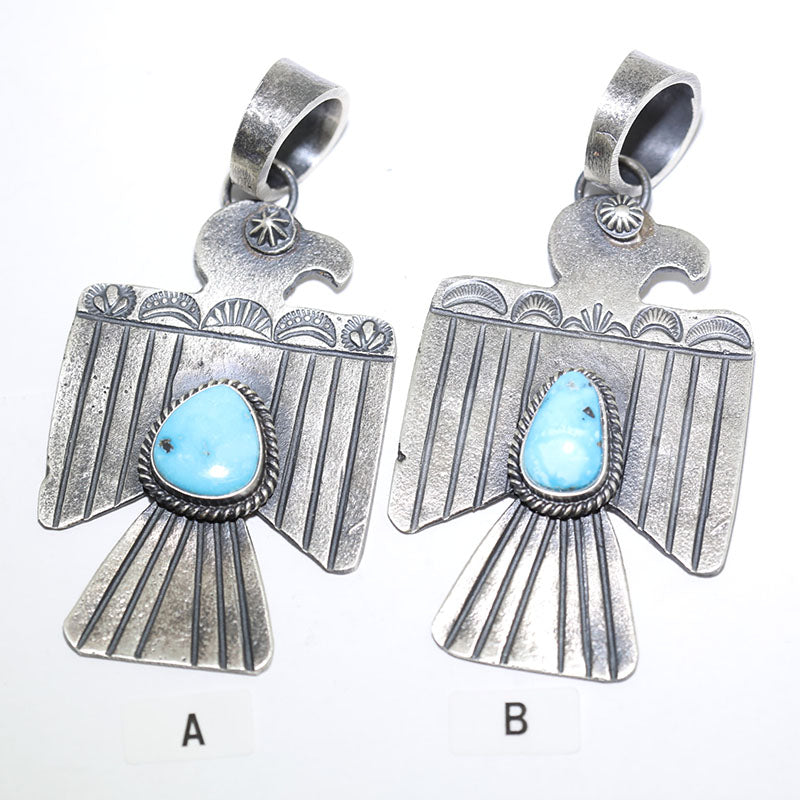Sterling silver pendant is shaped like the Thunderbird and is set with Stabilized Kingman Turquoise.