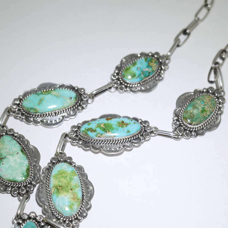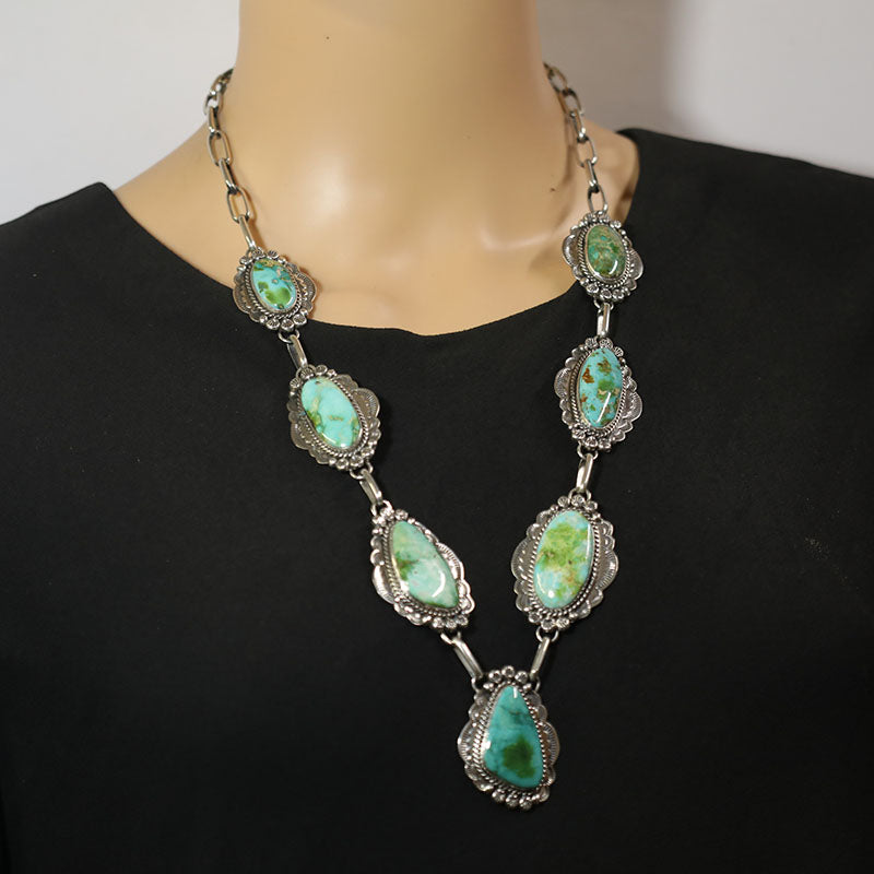 Beautiful, handmade sterling silver Necklace is set with Sonoran Gold Turquoise stones.
