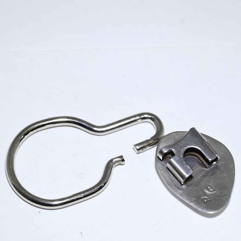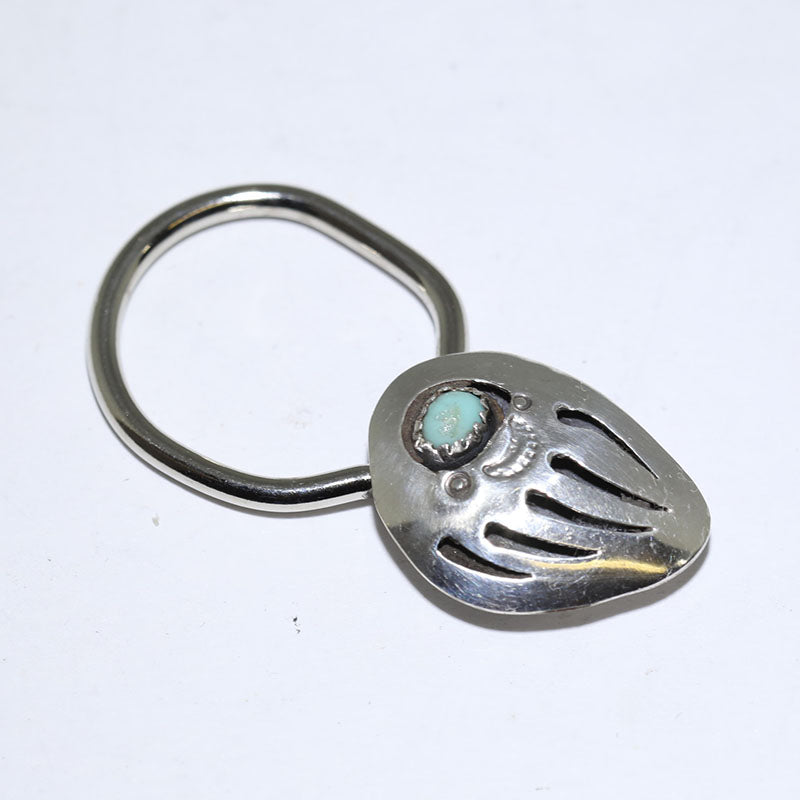 Sterling silver keyholder has a Bear Paw shape and is set with Turquoise stone in the center.