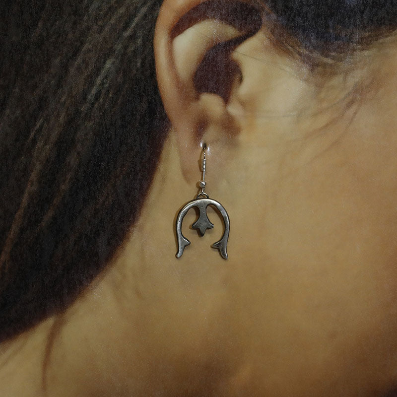Sterling silver, hook style earrings are Naja shaped with a shiny silver surface.