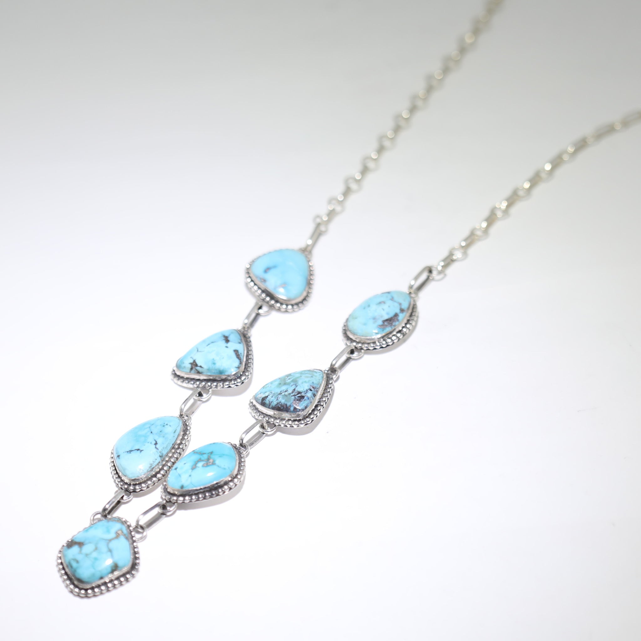 Beautiful, handmade sterling silver Necklace is set with KingmanTurquoise stones.