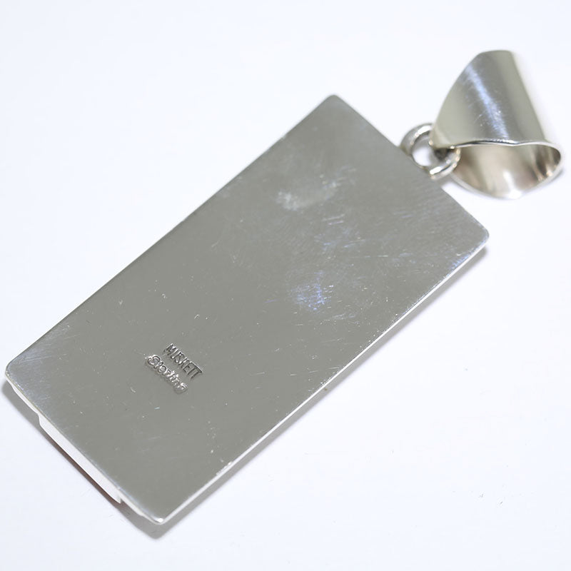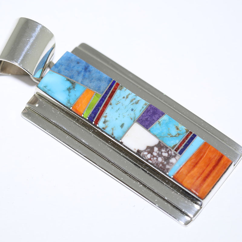 Sterling silver pendant is inlaid with a variety of beautiful and colorful stones with silver side borders.