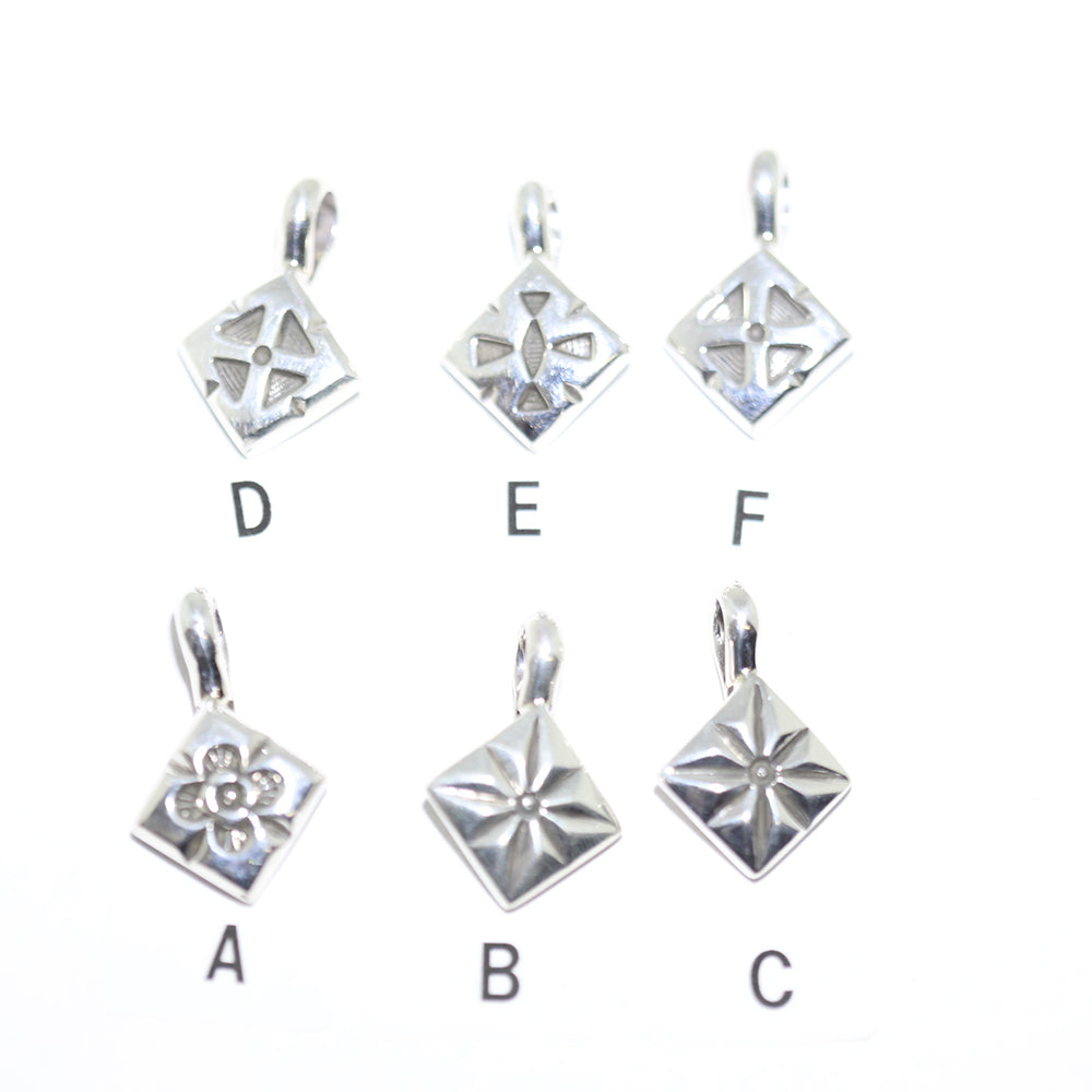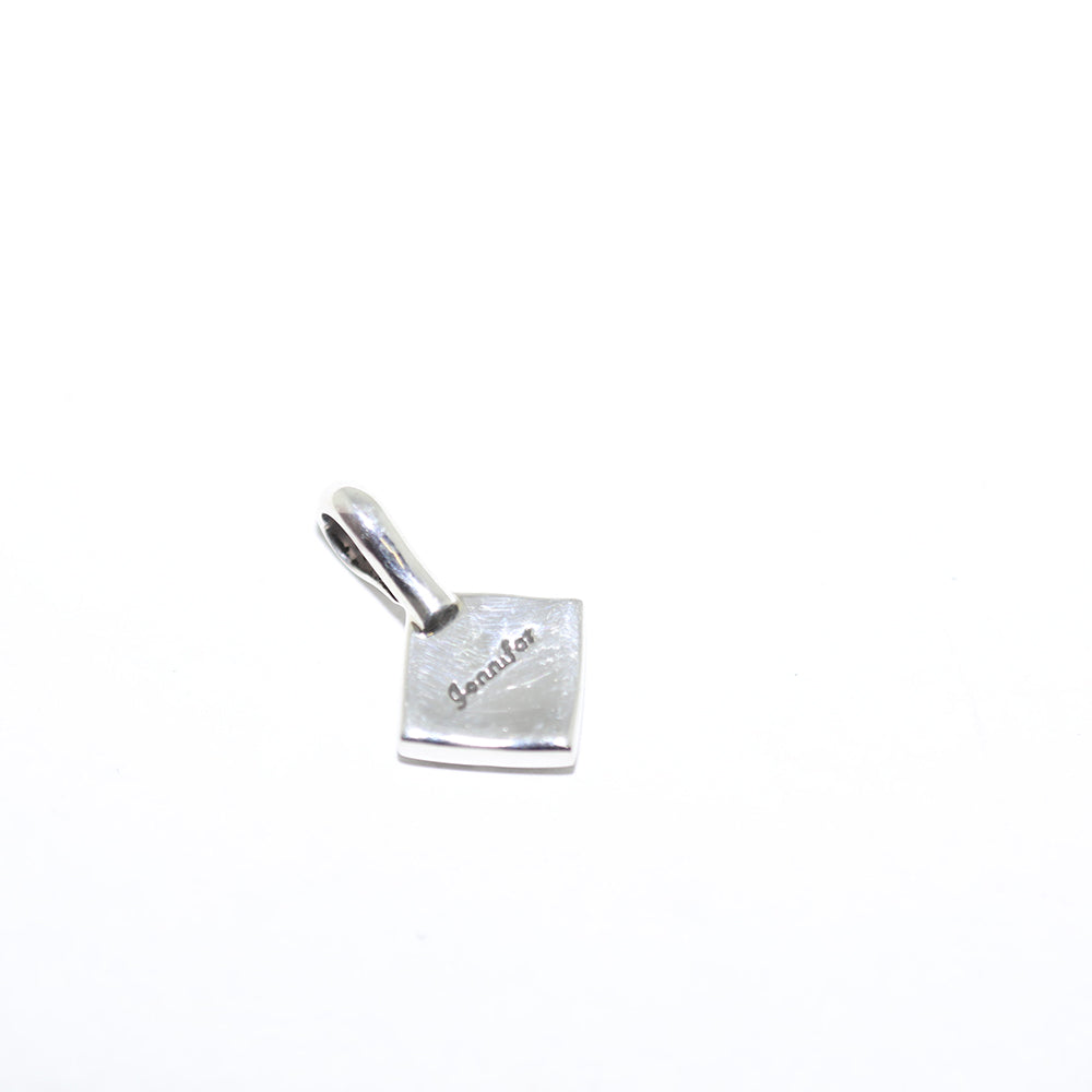 Sterling silver pendant is diamond shaped and beautifully hand stamped on thick silver.