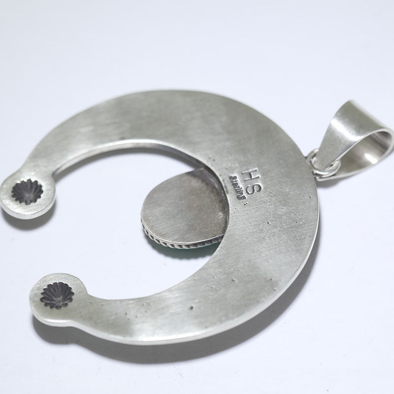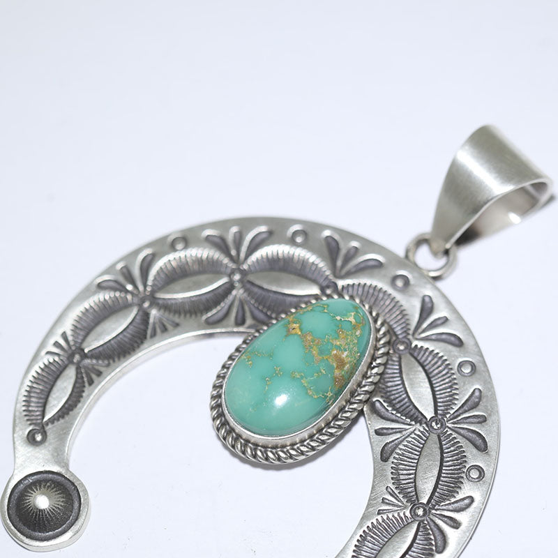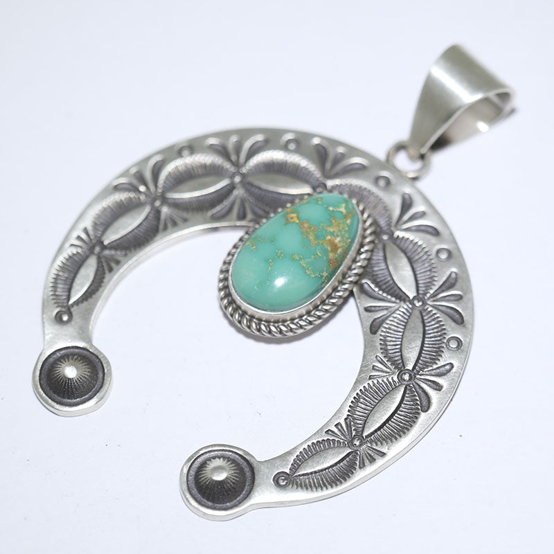 Sterling silver pendant is Naja shaped with hand stamped designs which is set with Royston Turquoise.