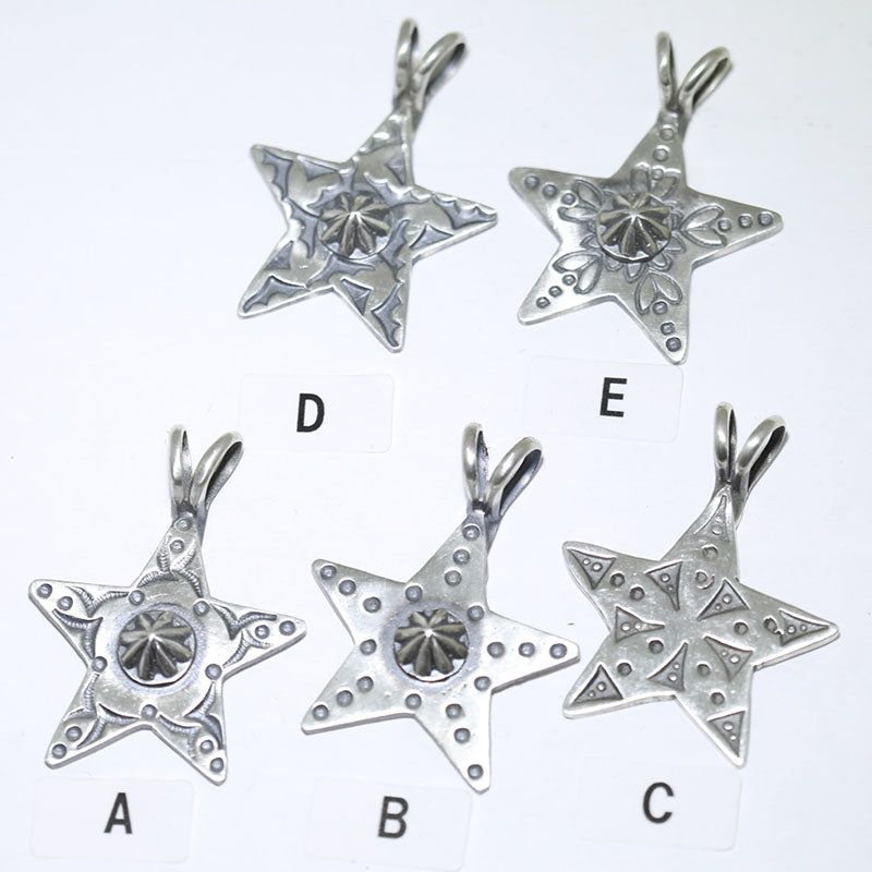 Sterling silver pendant is shaped like a Star and features a starburst in the center with different hand stamped designs to choose from.