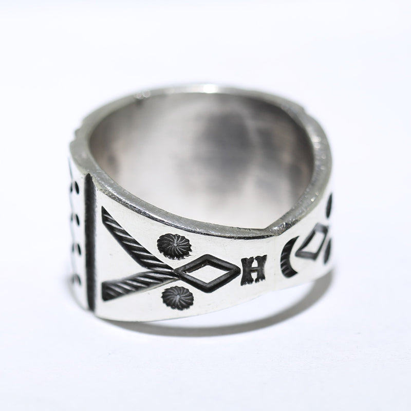 Harrison was born in 1952 and is half Navajo and half Irish. He learned silversmithing from his grandfather. He also took silversmithing classes by Jesse Monongya and Tommy Jackson. His life is very traditional; therefore, his jewelry is very traditional. He is known for his simple and clean designs.