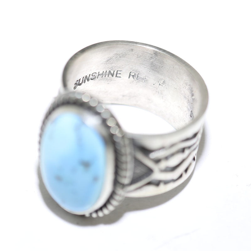 Sterling silver ring is beautifully hand stamped and set with Golden Hill Turquoise.