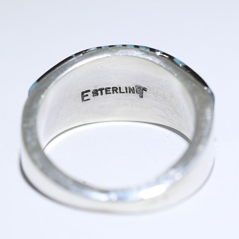 Beautiful sterling silver ring is done in the micro-Inlay design and depicts the Yei Bi Chei in a beautiful Jet theme.
