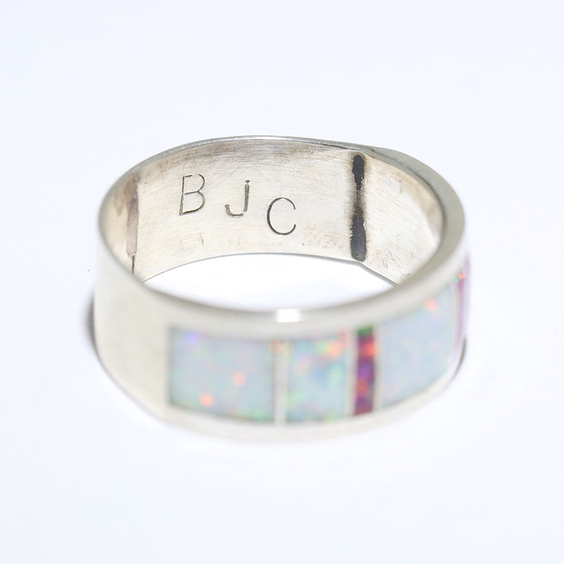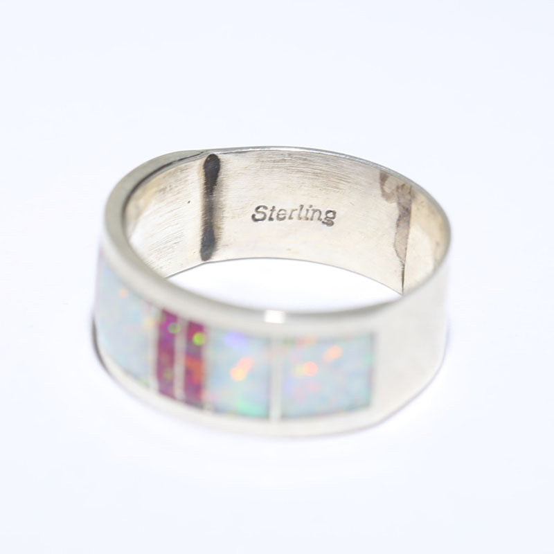 Sterling silver ring is inlaid with a combination of White and Pink Opal stones.