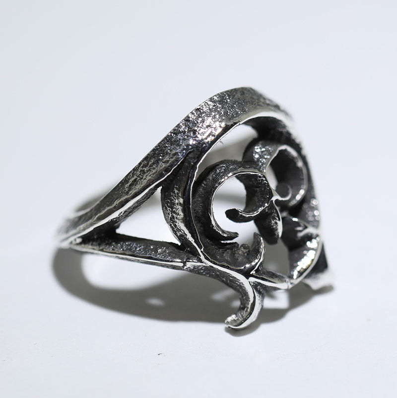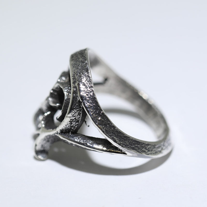 Sterling silver ring is created using the Tufa Cast method and features a unique design.