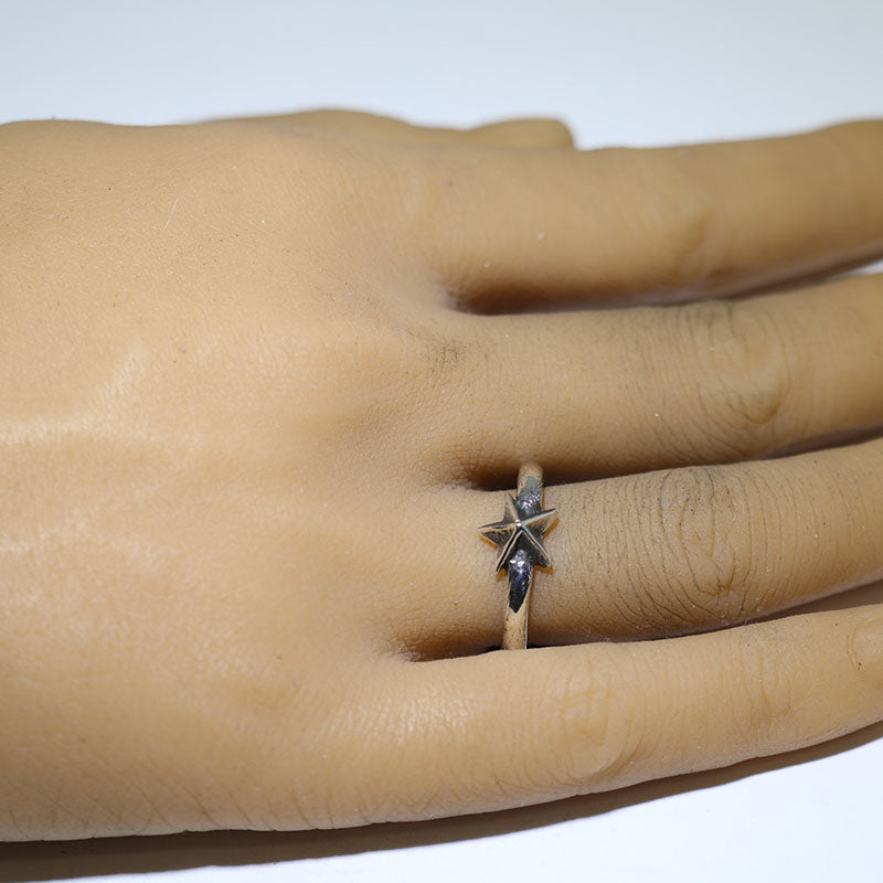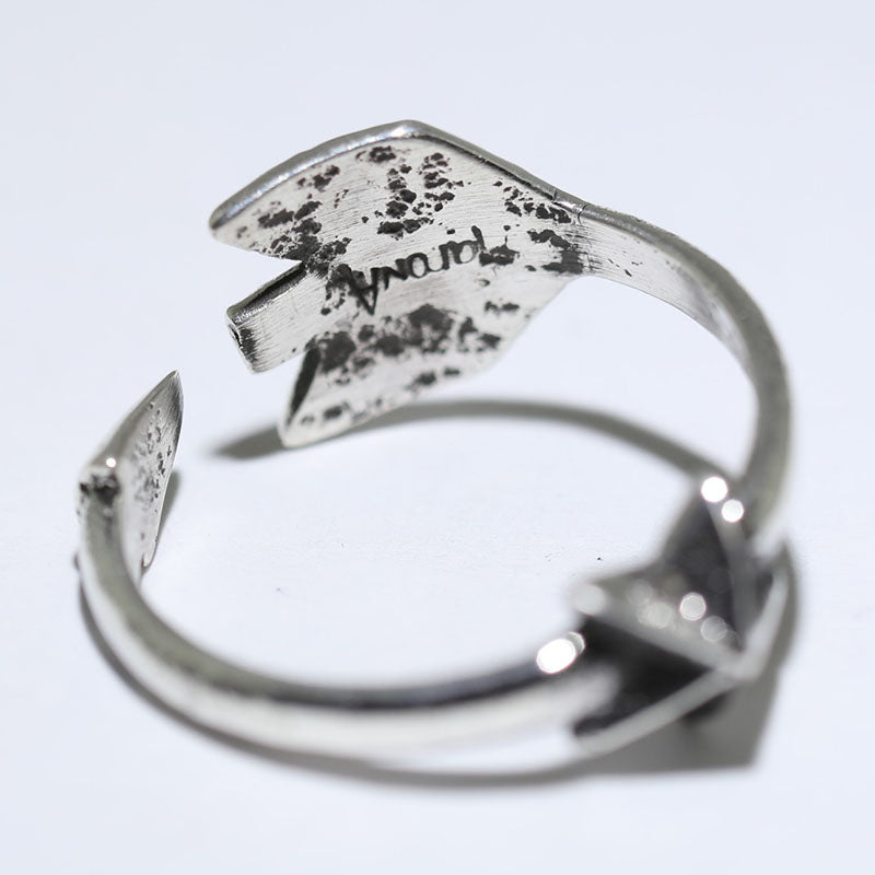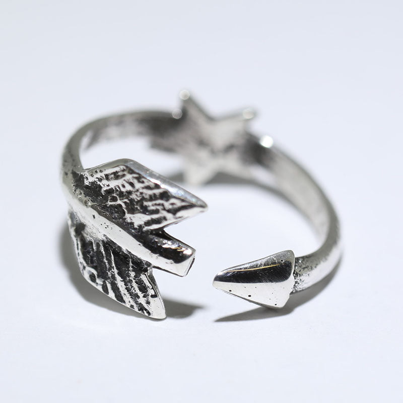 Sterling silver ring is created using the Tufa Cast method and features an arrow shooting through a Star.