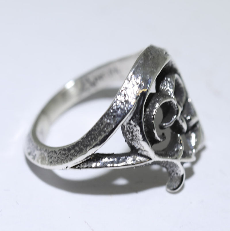 Sterling silver ring is created using the Tufa Cast method and features a unique design.