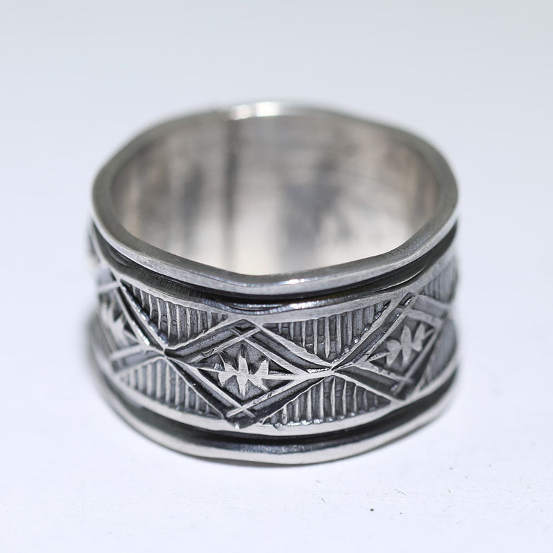 Sterling silver ring features a Star in the center and hand stamped designs all around the band.