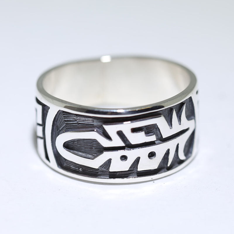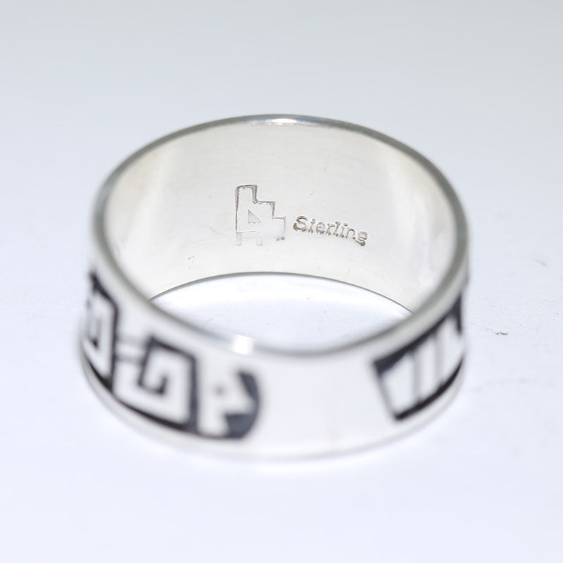 Sterling silver ring is done in the overlay method and features a feather in the center.