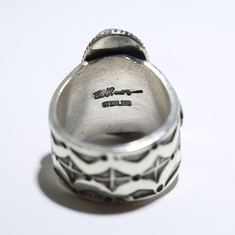 Beautiful sterling silver, hand stamped ring is set with Blue Gem Turquoise.