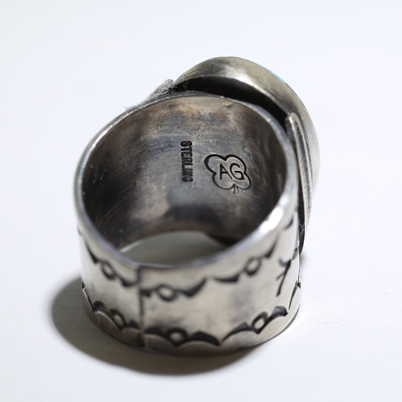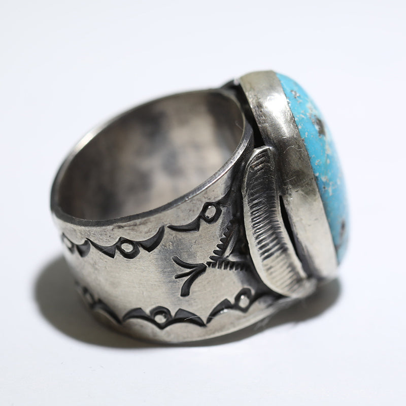 Sterling silver ring features hand stamped designs and is set with Persian Turquoise.