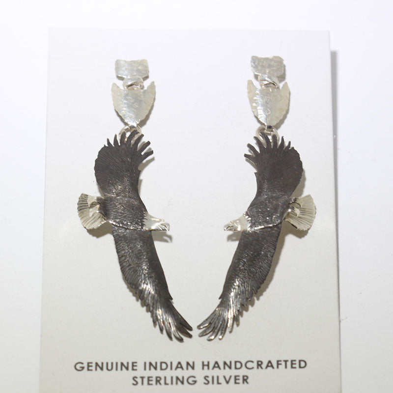 Handmade sterling silver earrings of an Eagle. Every little feather is edged by hand.