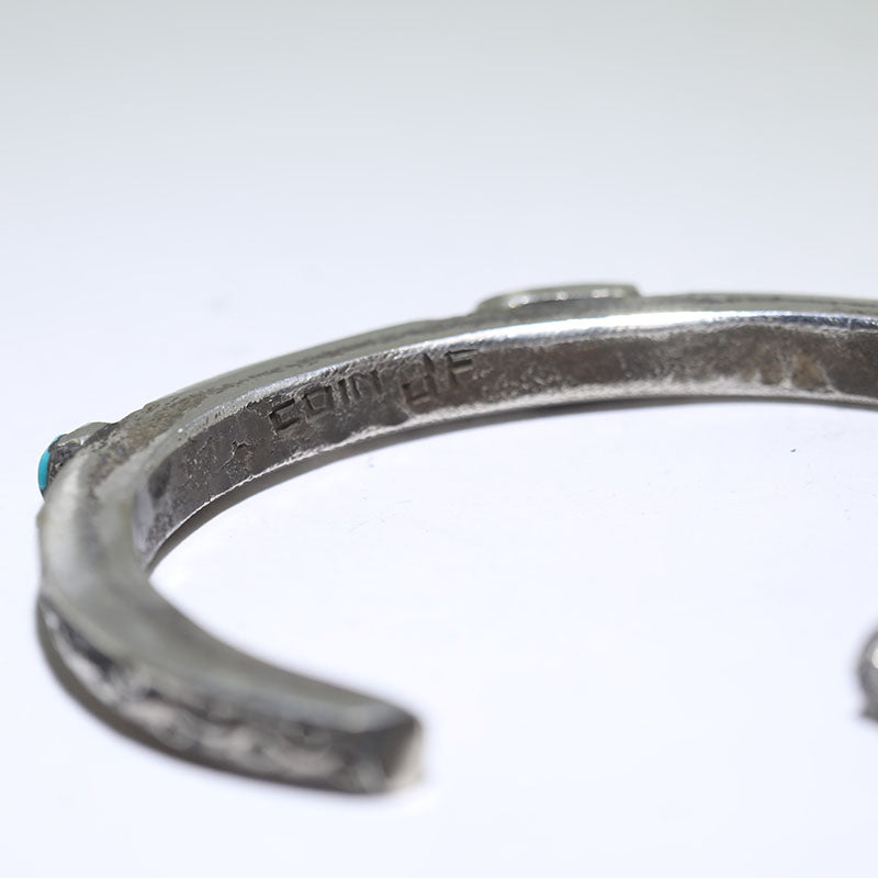 Jock was collector and trader of Native American Jewelry. An Arizona native, Jock Favour is well-known for his old-style jewelry that pays tribute to the classic techniques of Native American jewelry-making. Jock achieves the antique look of his jewelry by combining older stones with ingot silver to create heavy and beautiful pieces.