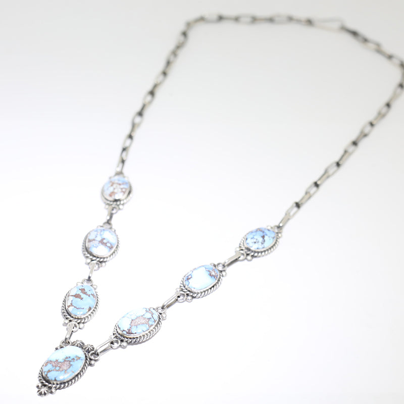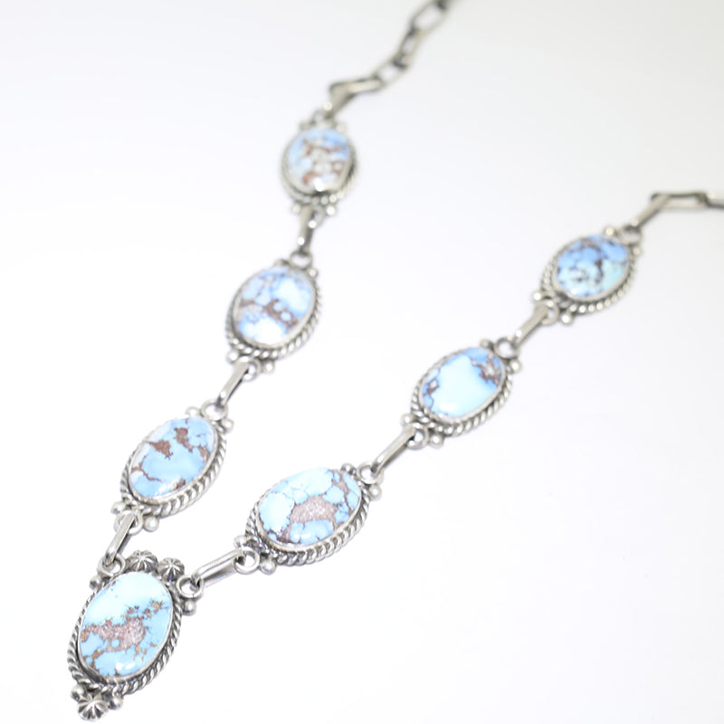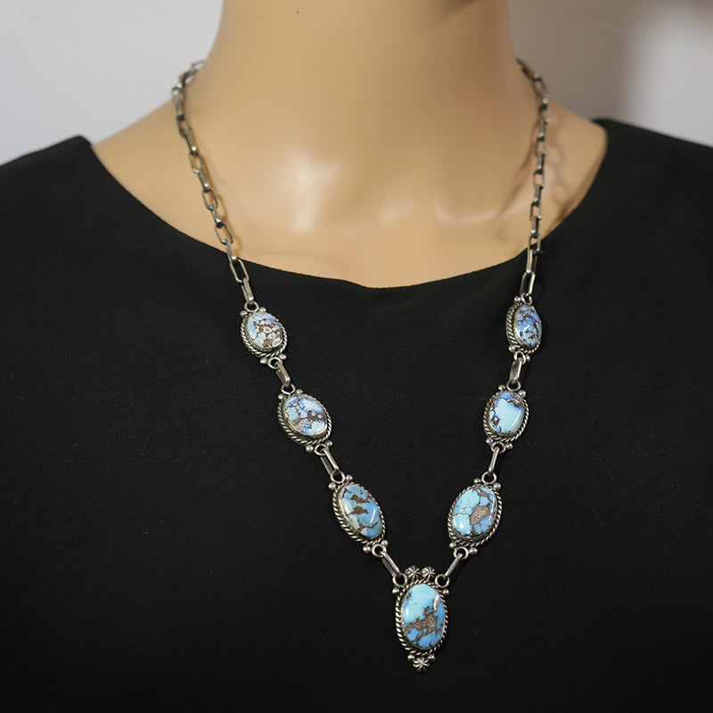Beautiful, handmade sterling silver Squash Blossom Necklace is set with Golden Hill Turquoise.