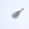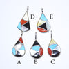 Sterling silver pendant is tear shaped and inlaid with turquoise, jet, coral and mother of pearl.
