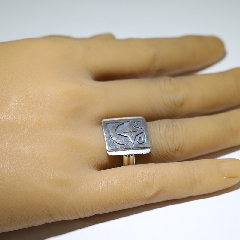 Clifton is a Hopi Artist from Shungopavi, AZ. He makes a variety of Hopi jewelry using the overlay method. His jewelry is untraditional and focuses on the art of making jewelry. Stonework was not popular in Hopi jewelry, but he started using lots of stones and different techniques of jewelry styles. His hallmark is the Sun.