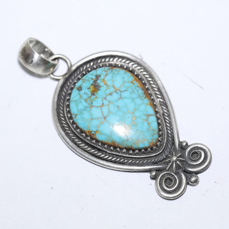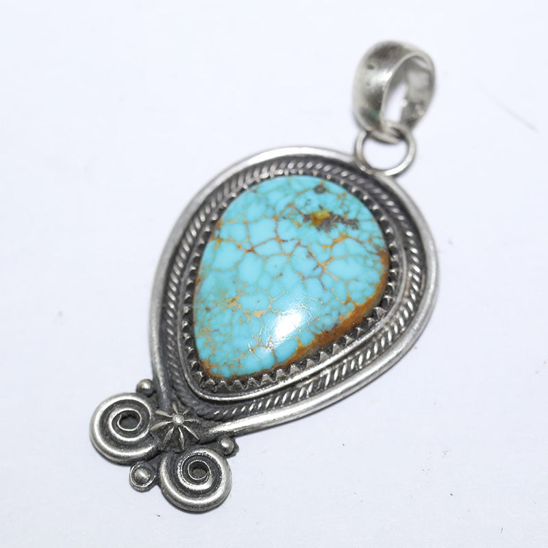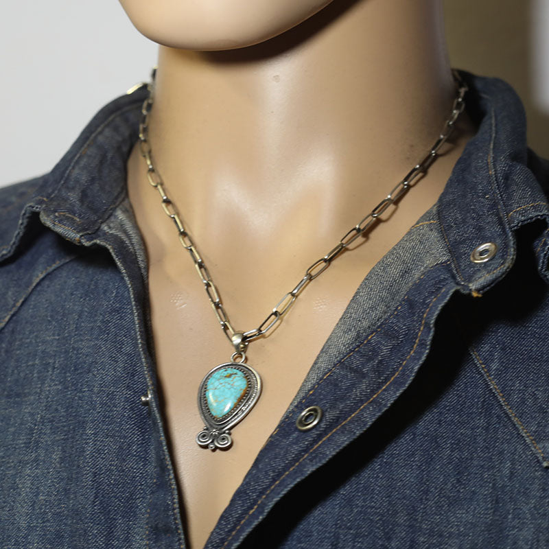 Beautiful sterling silver pendant is set with Natural Number Eight Turquoise with a silver border that frames the stone.