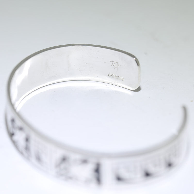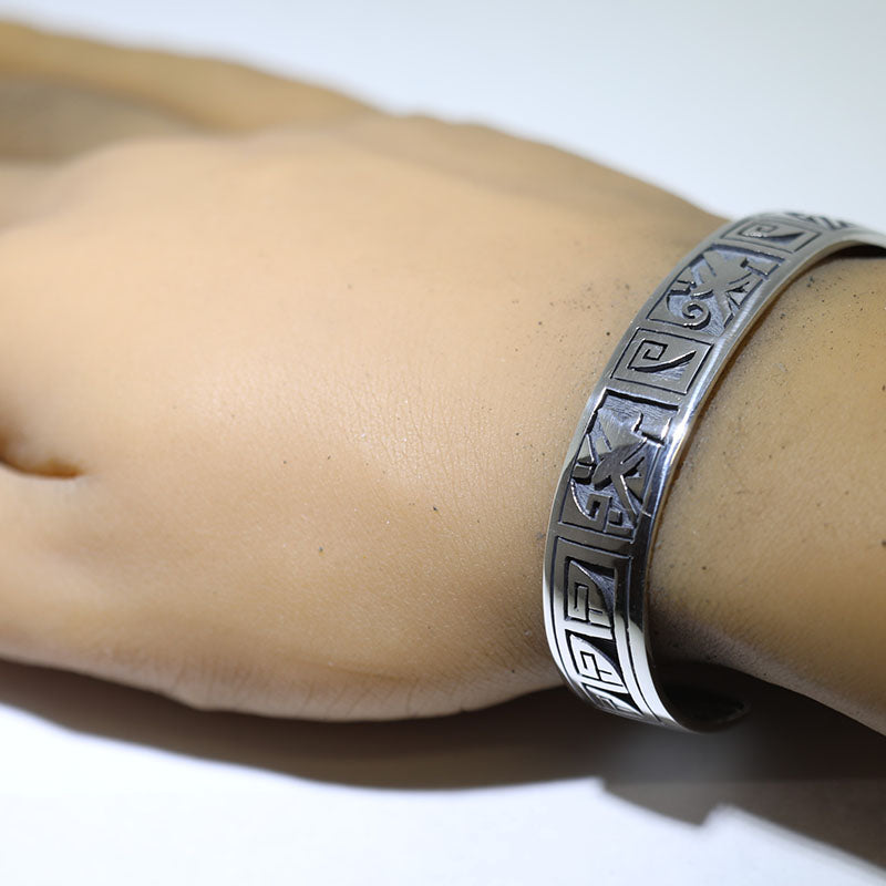 Sterling silver bracelet is done in the overlay technique, and each detail is cut by hand. This piece features Bears along the band.