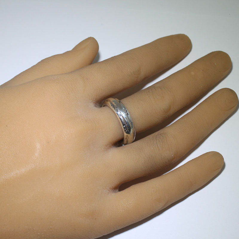 Beautiful hand stamp silver ring. this ring is in a thick half round wire.
