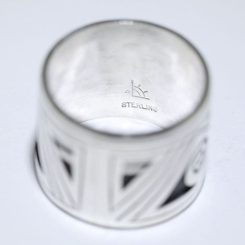 Sterling silver ring is done in the overlay technique and features the Sun Face in the center. Each detail is but by hand.