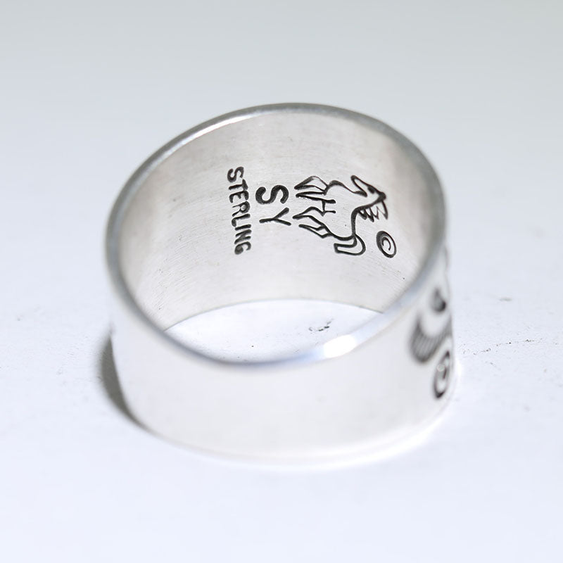 Sterling silver ring is beautifully hand stamped along the front of the band.
