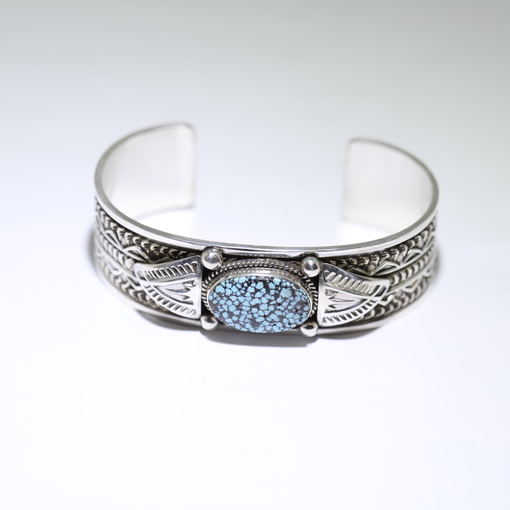 Handmade stamp Bracelet by Darrell Cadman set with Kingman turqouise from Arizona