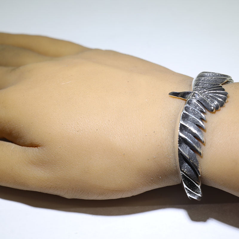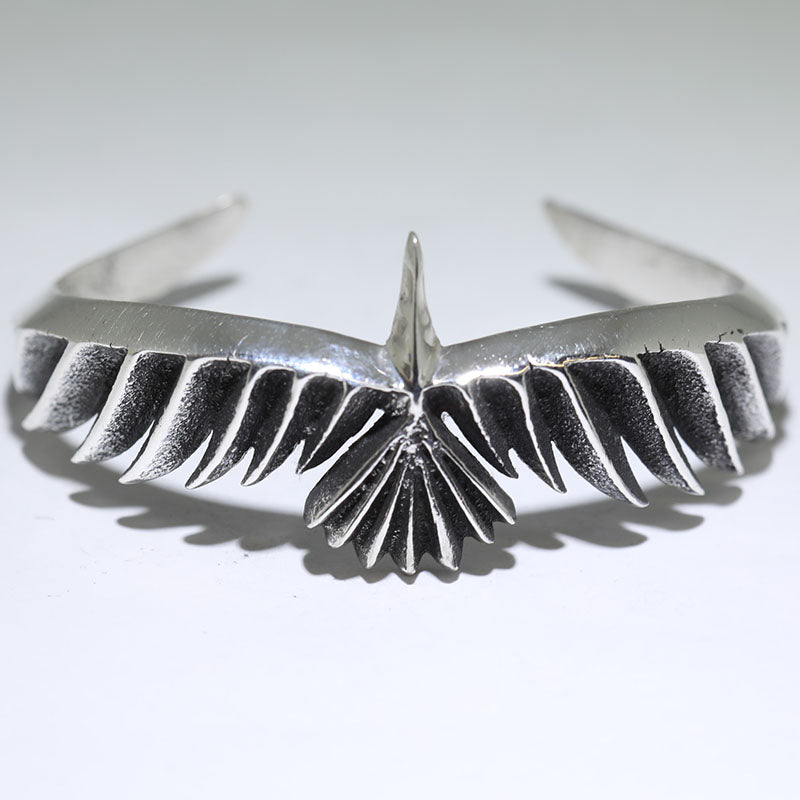 Beautiful sterling silver bracelet is made from the Tufa Cast method and features an Eagle with wings that wrap around your wrist.