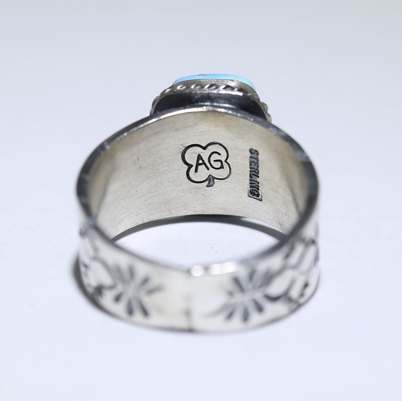 Sterling silver ring features hand stamped designs and is set with Golden Hill Turquoise.