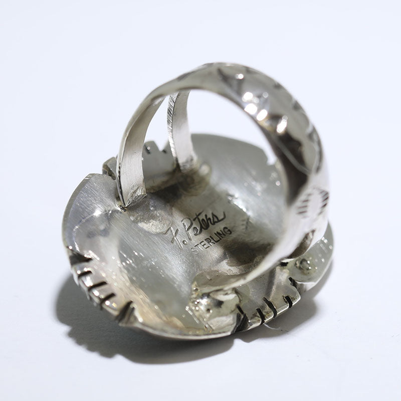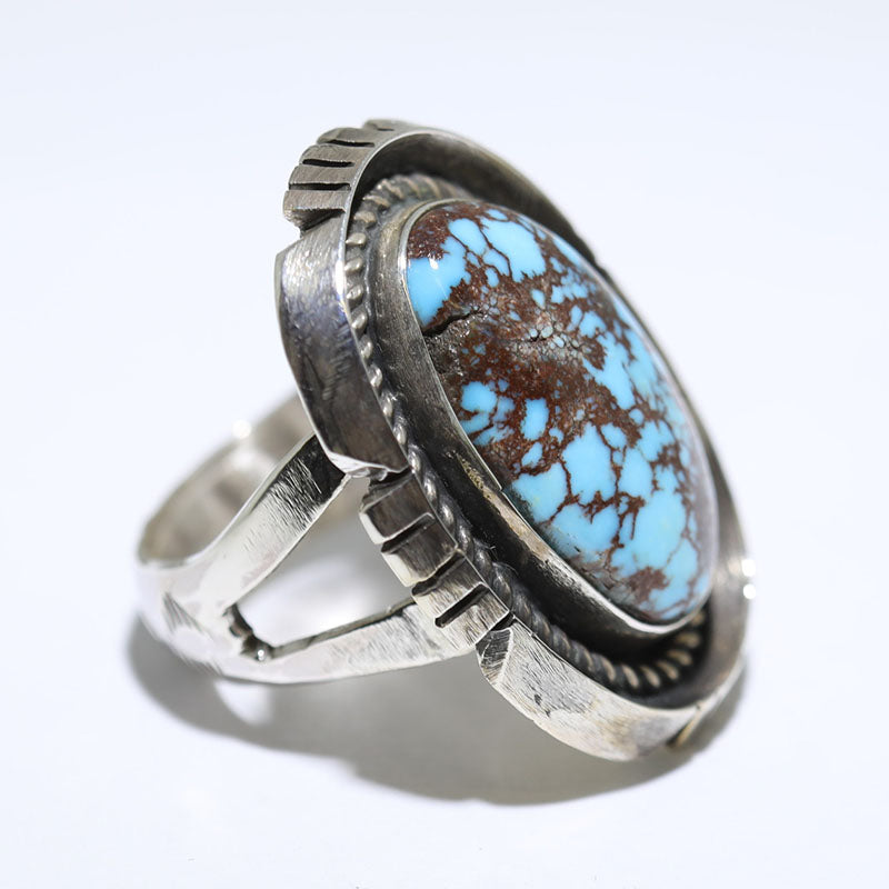 Sterling silver ring is set with Stabilized Egyptian Turquoise and features a silver border around the stone.