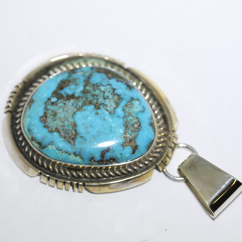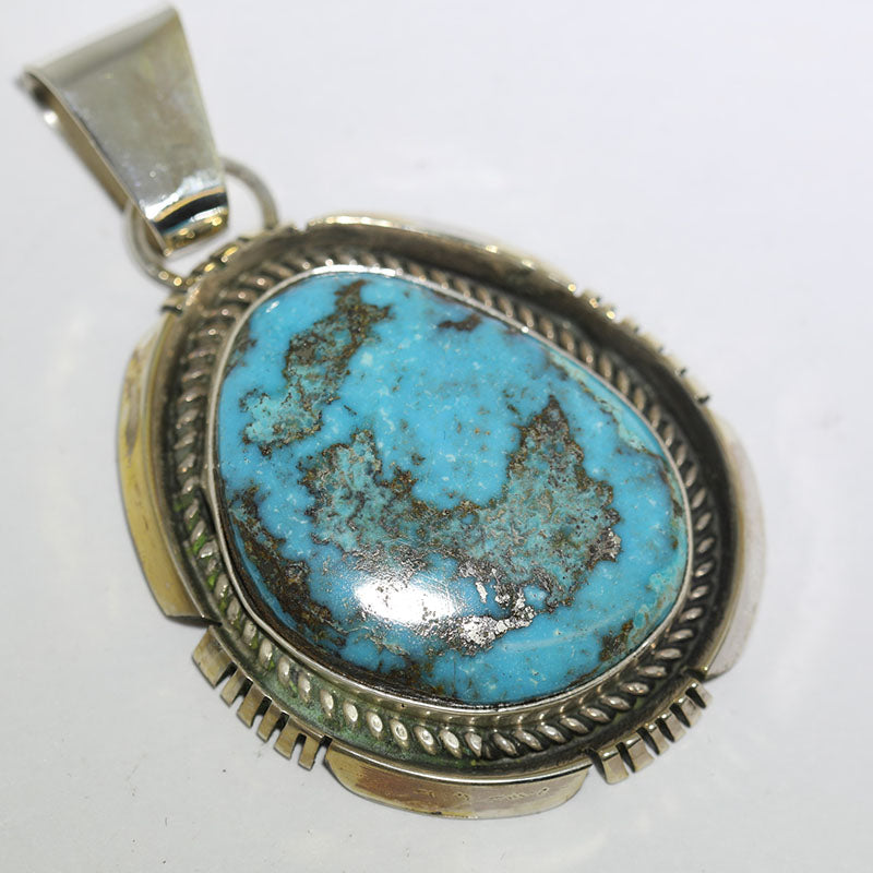 Sterling silver pendant is set with Natural Morenci Turquoise and features a silver border around the stone.