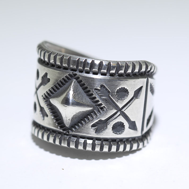 Harrison was born in 1952 and is half Navajo and half Irish. He learned silversmithing from his grandfather. He also took silversmithing classes by Jesse Monongya and Tommy Jackson. His life is very traditional; therefore, his jewelry is very traditional. He is known for his simple and clean designs.