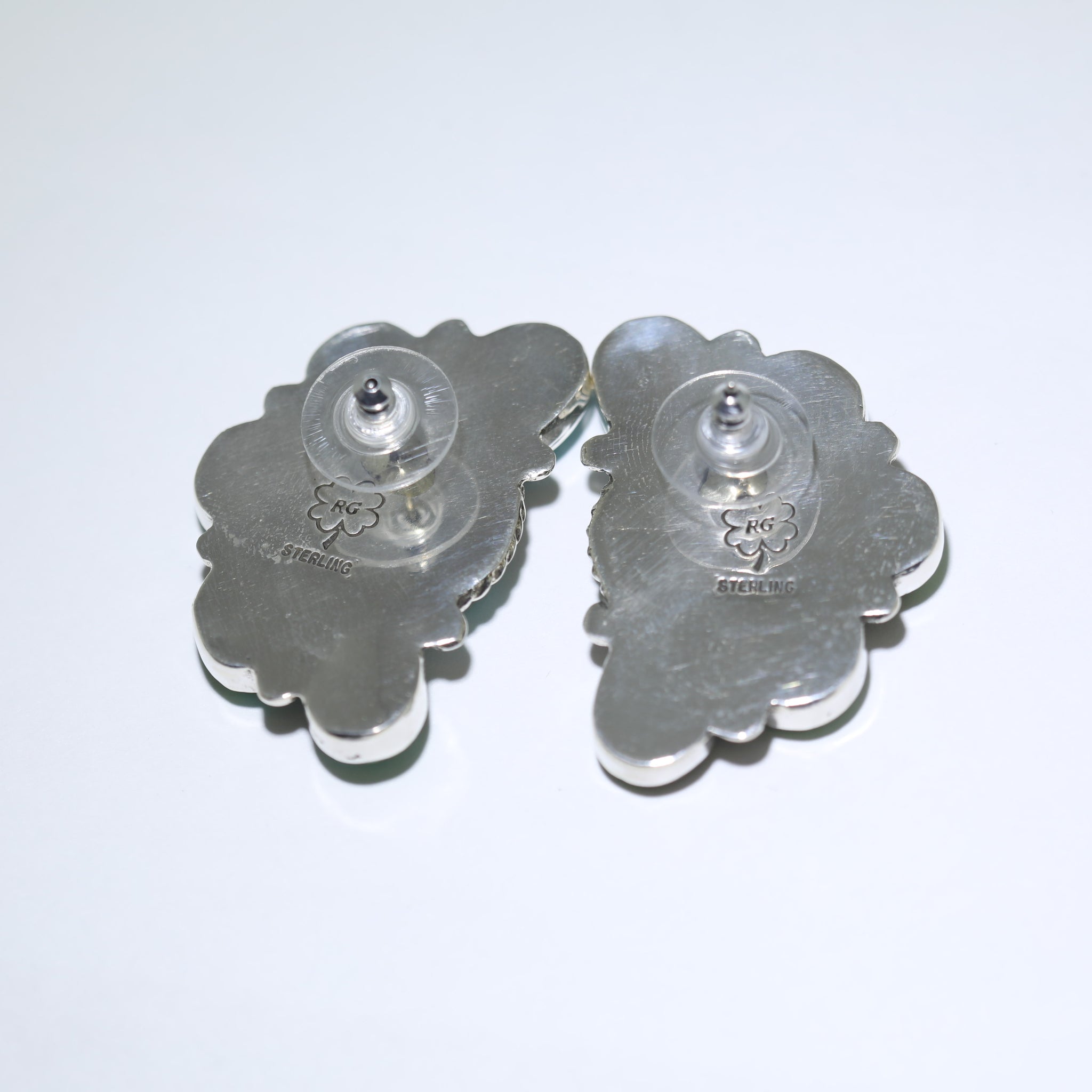 Sterling silver earrings are cluster shaped and set with Sonoran Gold Turquoise stones.