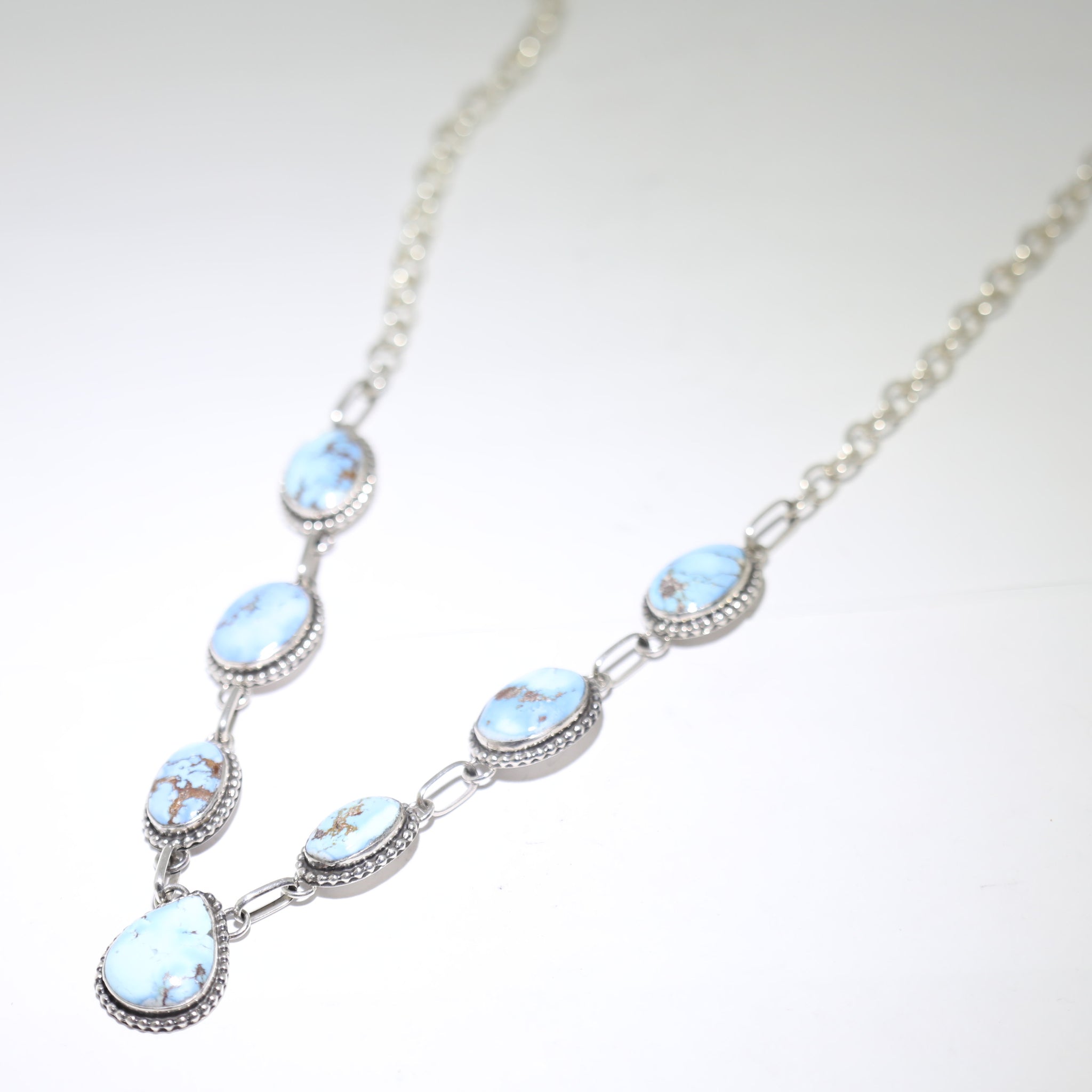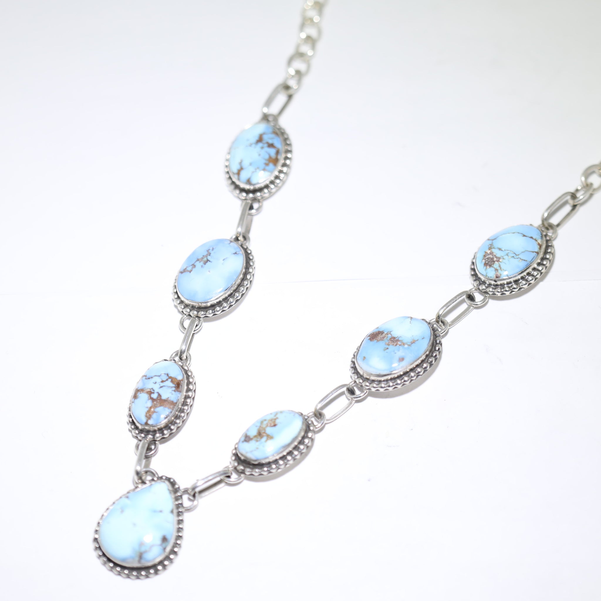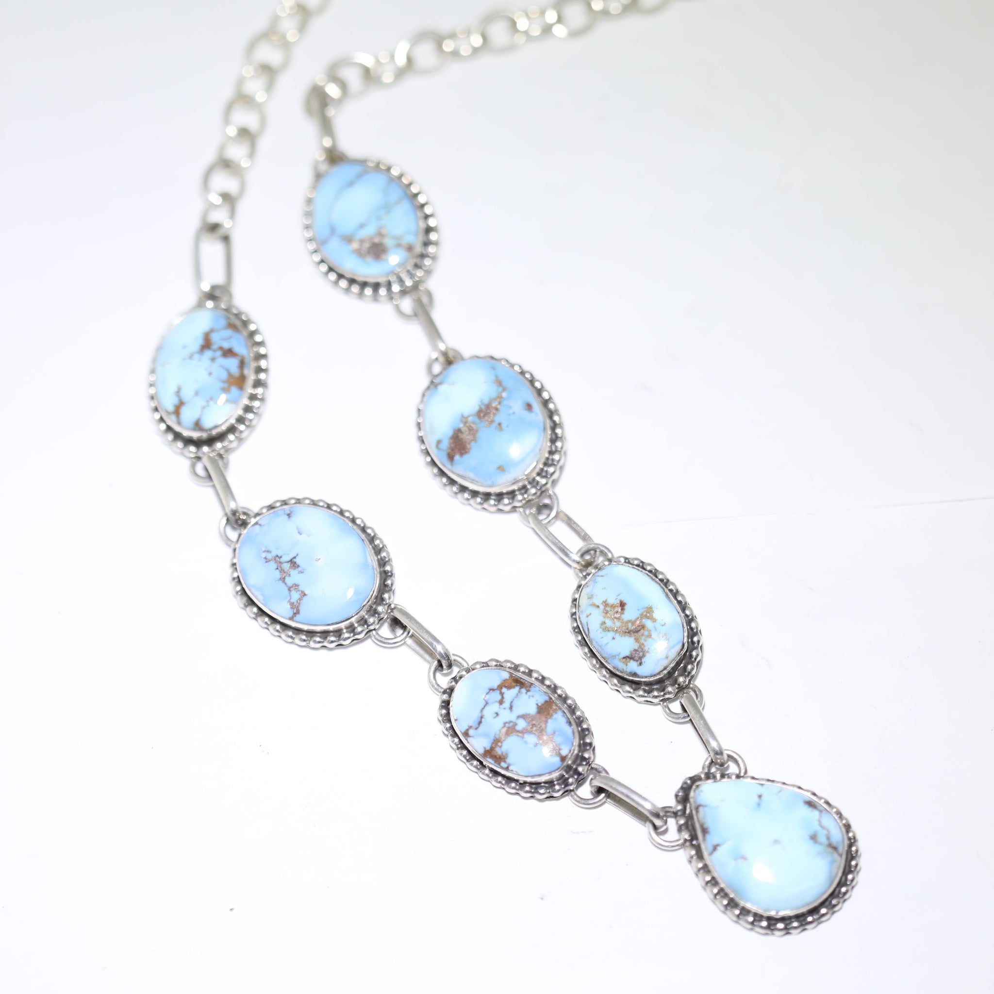 Beautiful, handmade sterling silver Necklace is set with Golden Hill Turquoise stones.