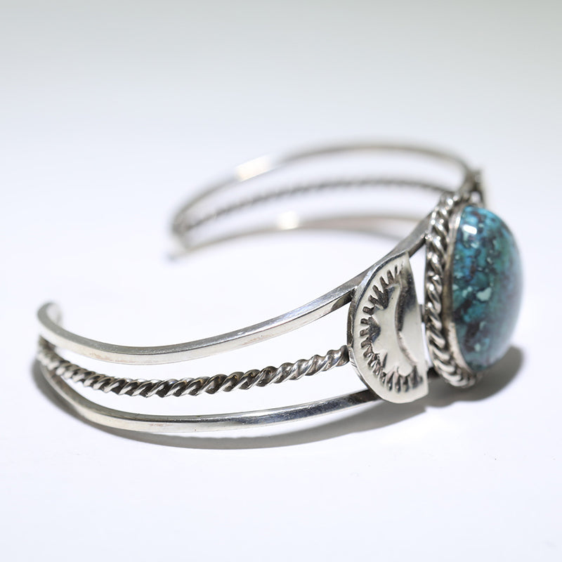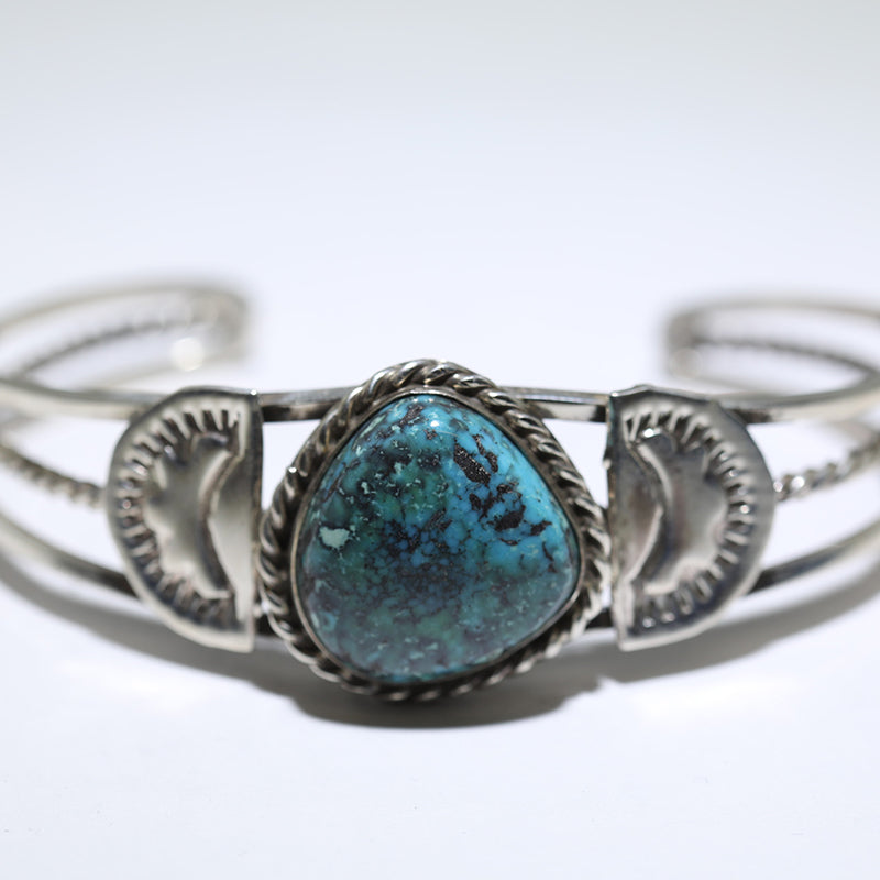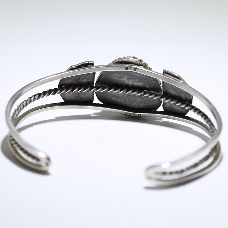 Sterling silver bracelet has a triple band design and is set with Natural Smokey Mountain Turquoise.