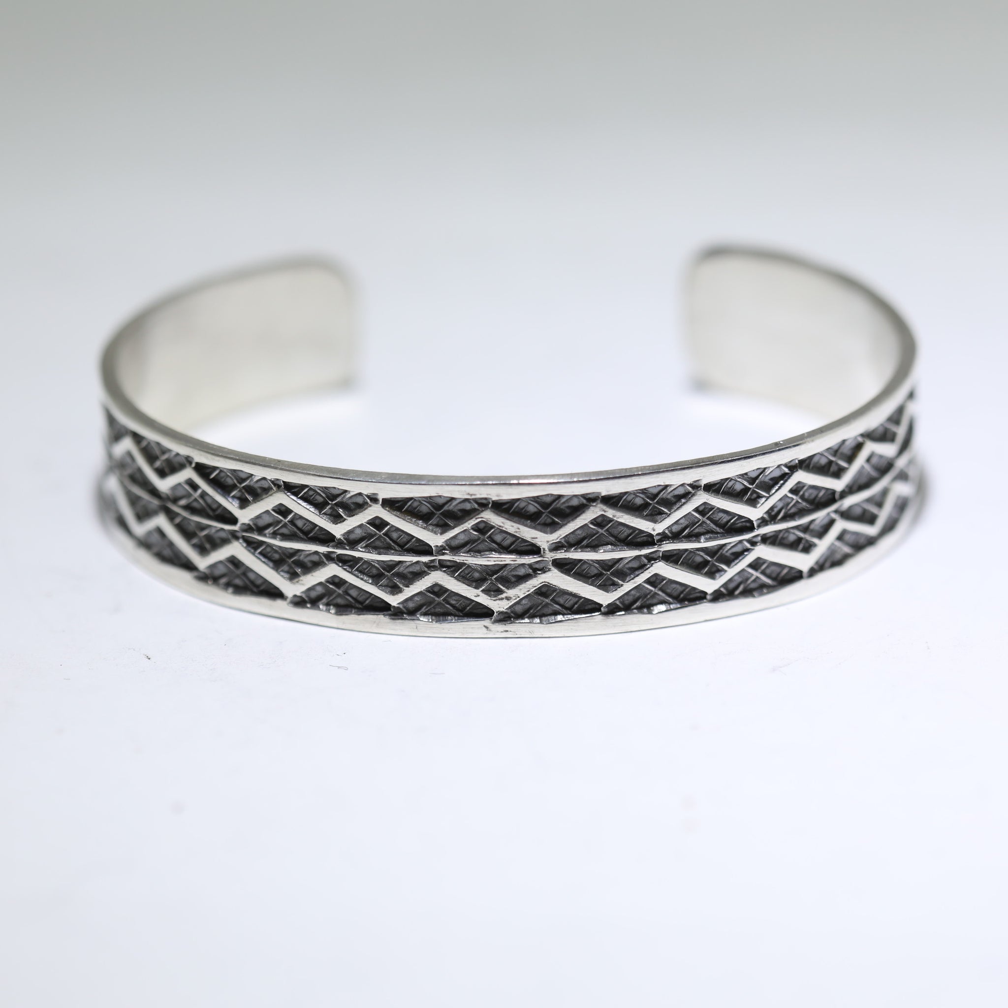 Sterling silver bracelet is beautifully hand stamped with a rug design pattern.