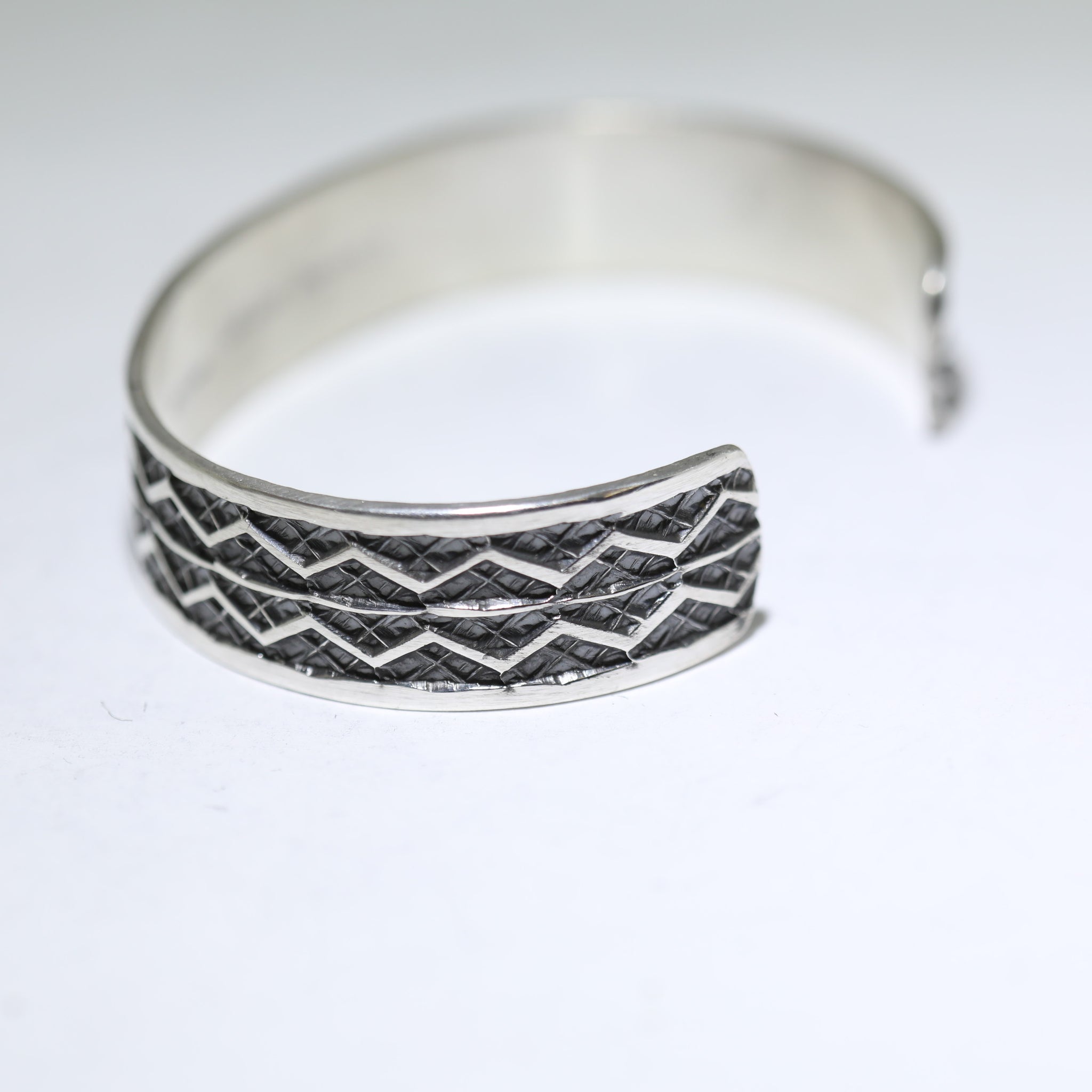 He is known for his stamp work in silversmithing. He makes a number of different things including jewelry. His fine art designs are made by the use of many stamps. He has many fans and collectors of his jewelry. No matter what occasion lies ahead, his jewelry will match any scene. |