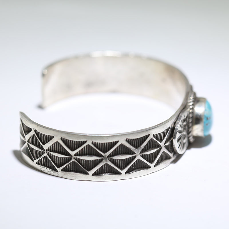 Andy was born in 1966, in Gallup, NM. His brothers Darrell and Donovan Cadman, as well as Gary and Sunshine Reeves are all silversmiths. He is the oldest of his brothers, so his stamp work is very deep and wild. His heavy and fine stamp work are popular with high grade turquoise.